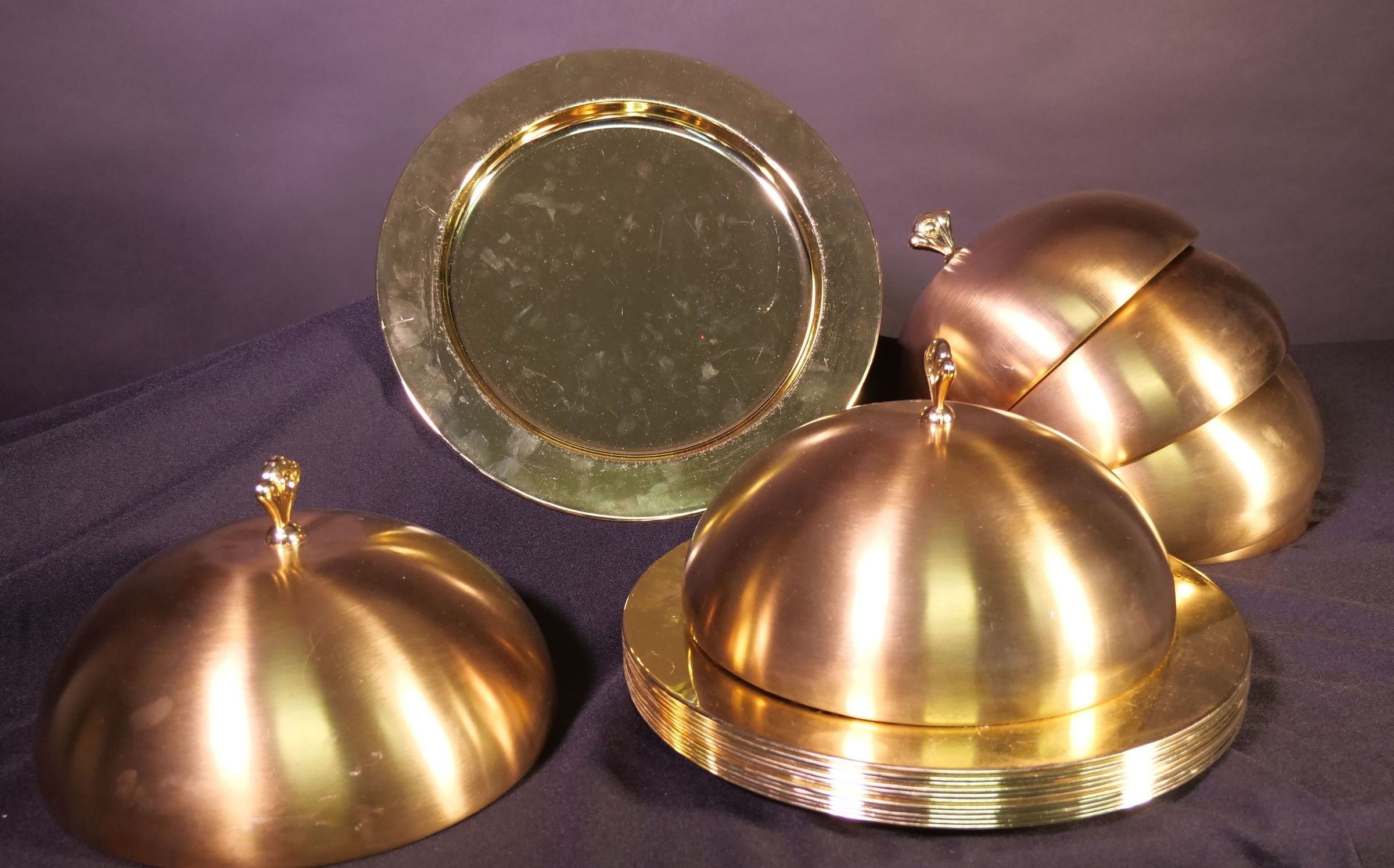6x Cloches and 12 metal platters