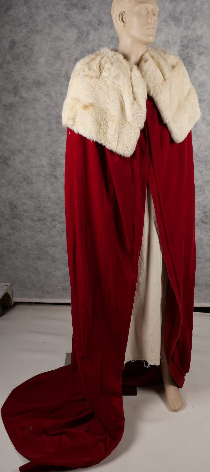 Extra long velvet cape with real fur collar