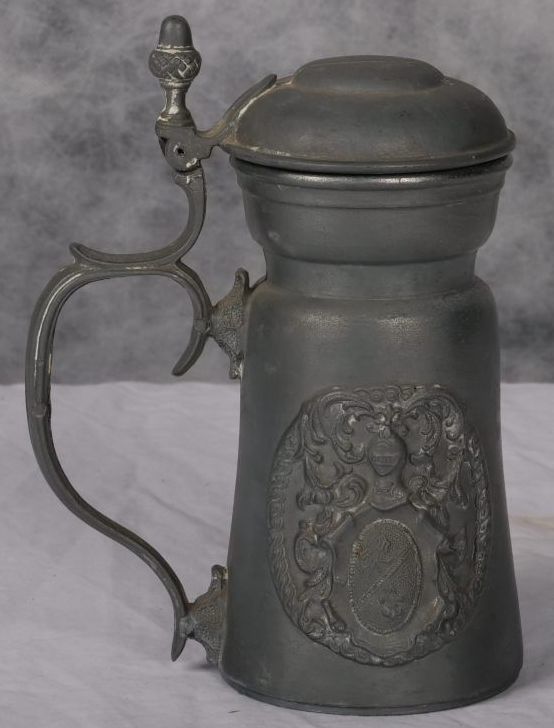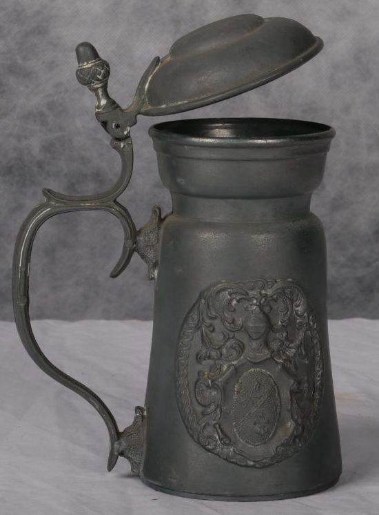 Steel tankard with hinged lid.