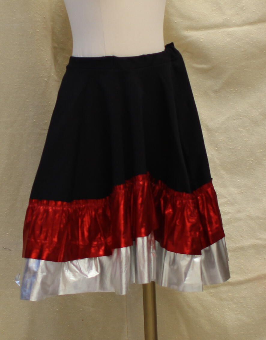Black Skirt with metallic red and silver ruffles
