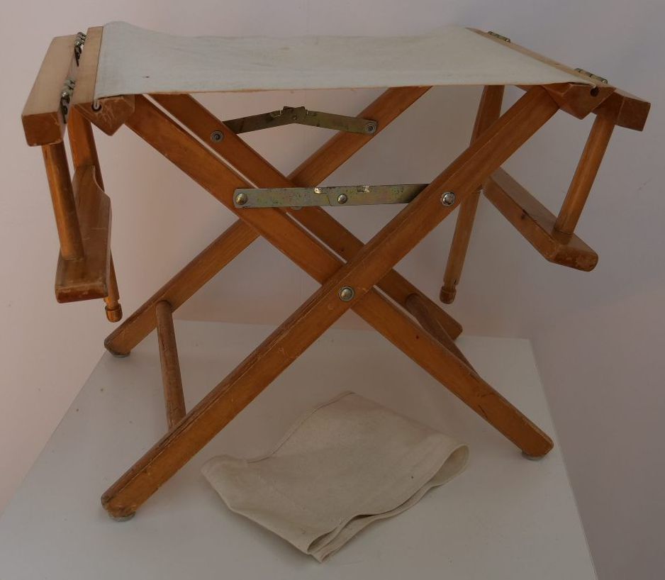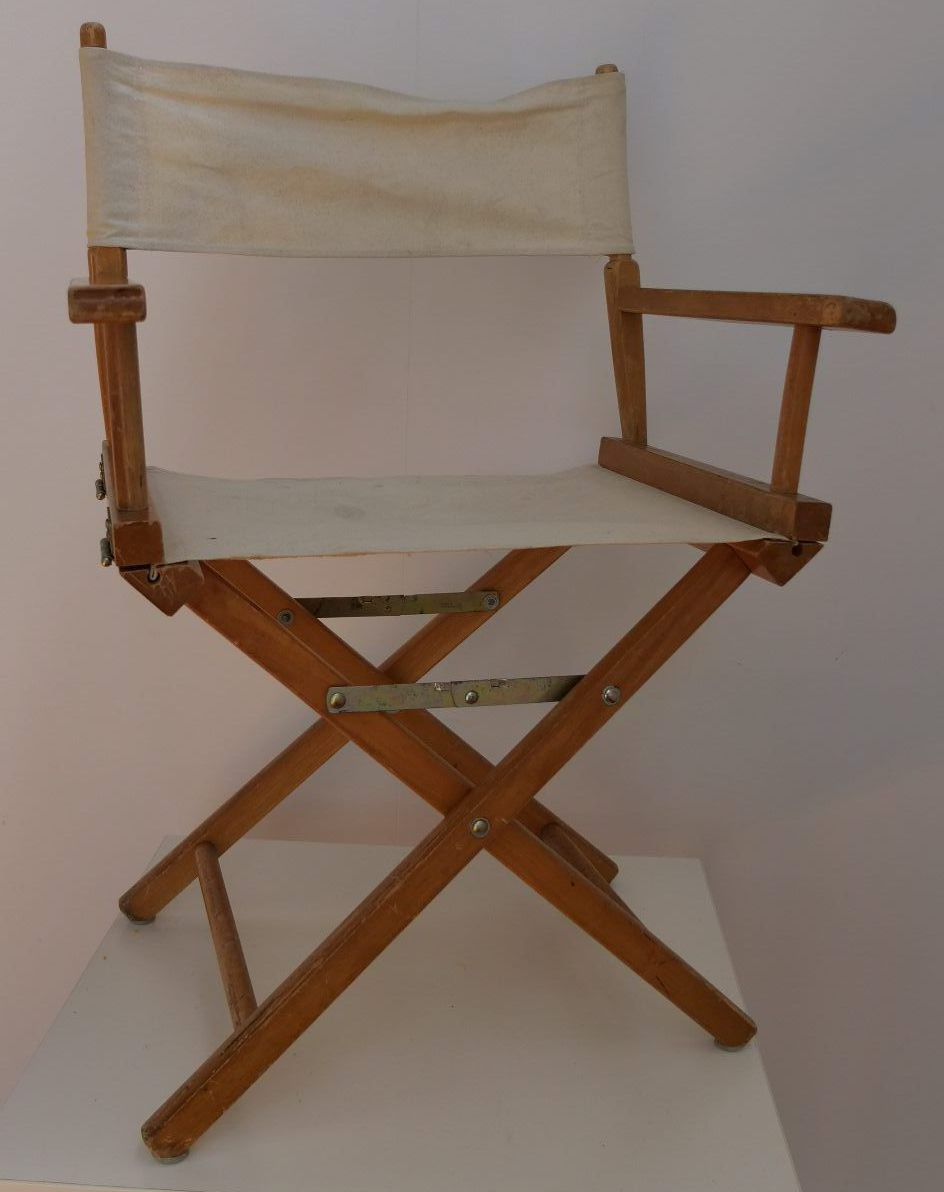2x white canvas and timber frame director chairs