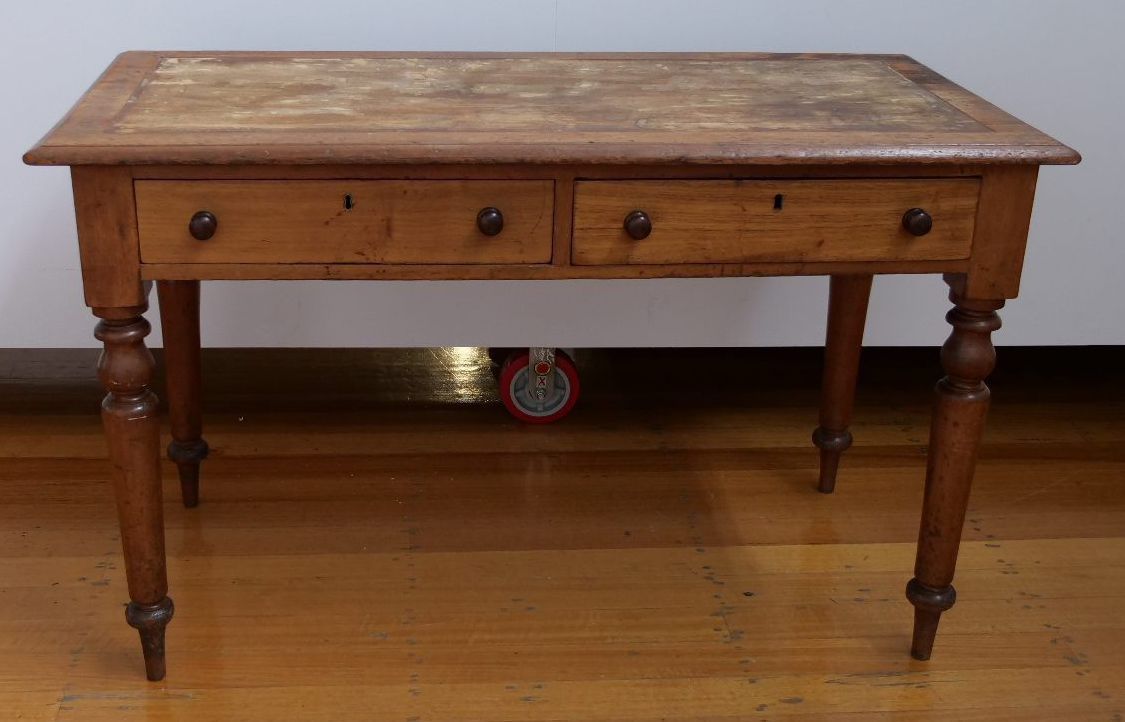 Antique wooden desk with 2 drawers