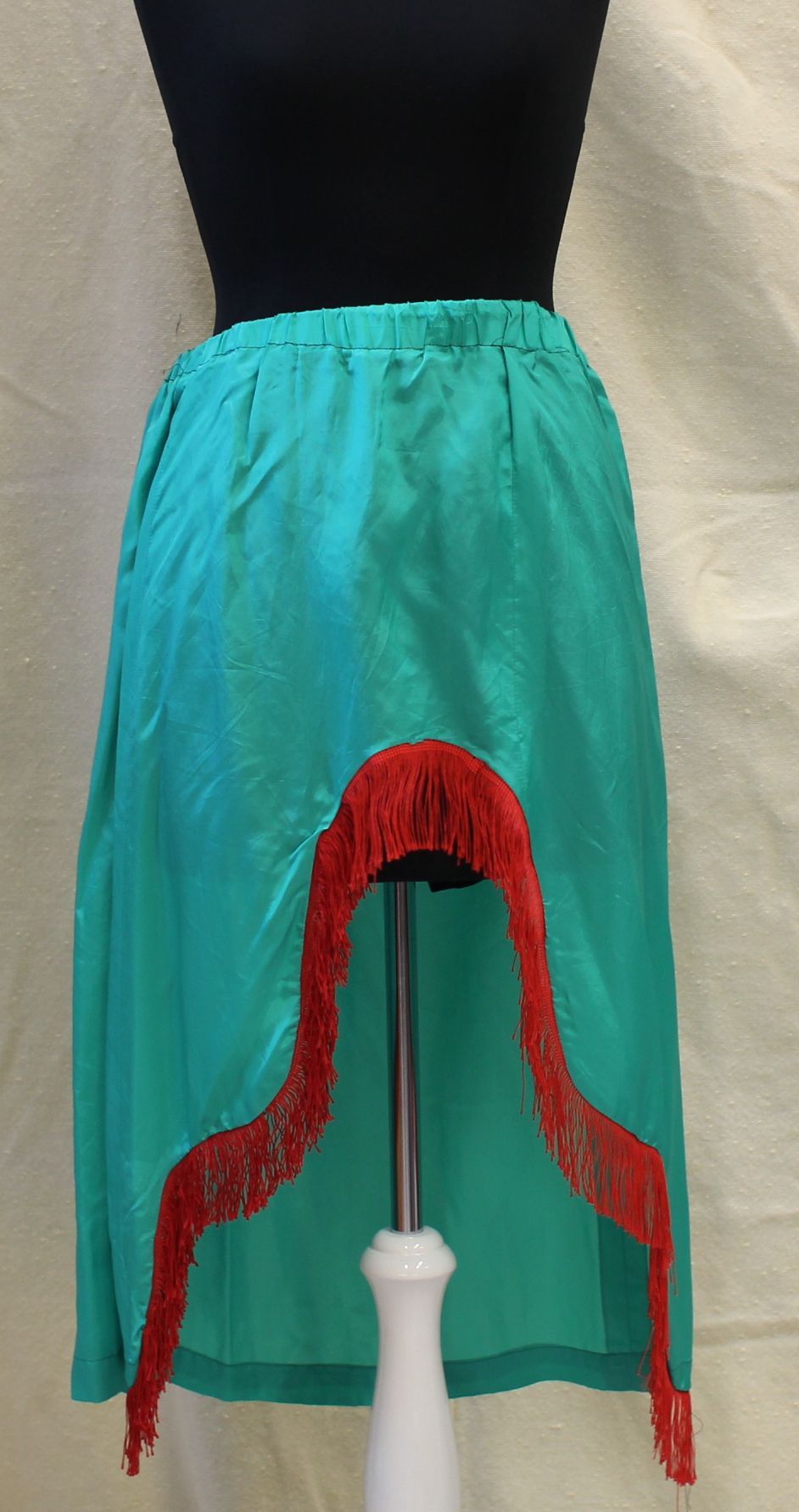 Turquoise satin skirt with fringing
