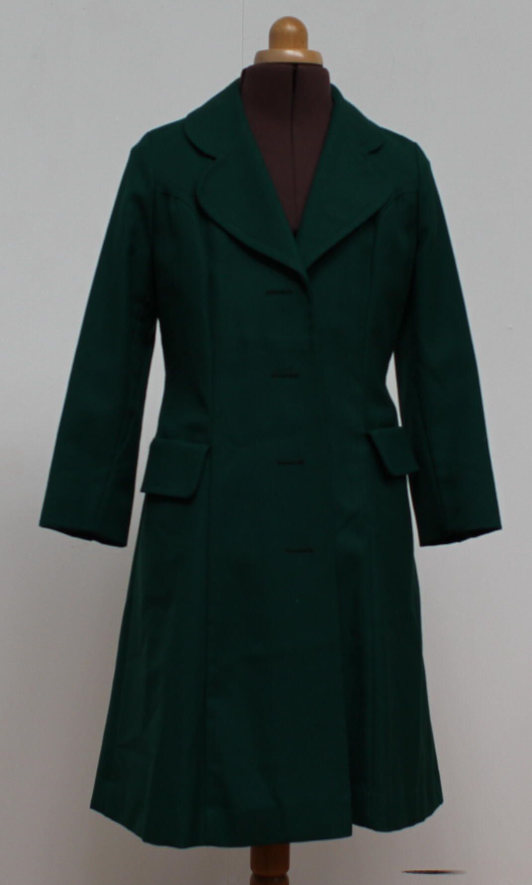 Green worsted wool women's overcoats. Vintage but brand new condition. No buttonsContext