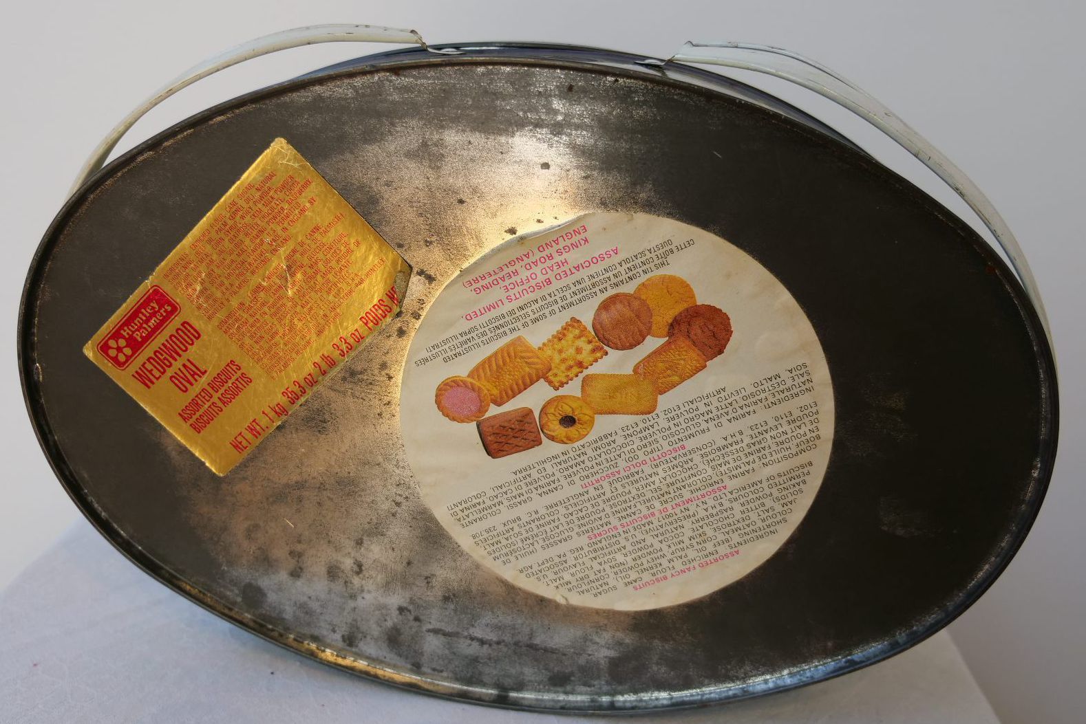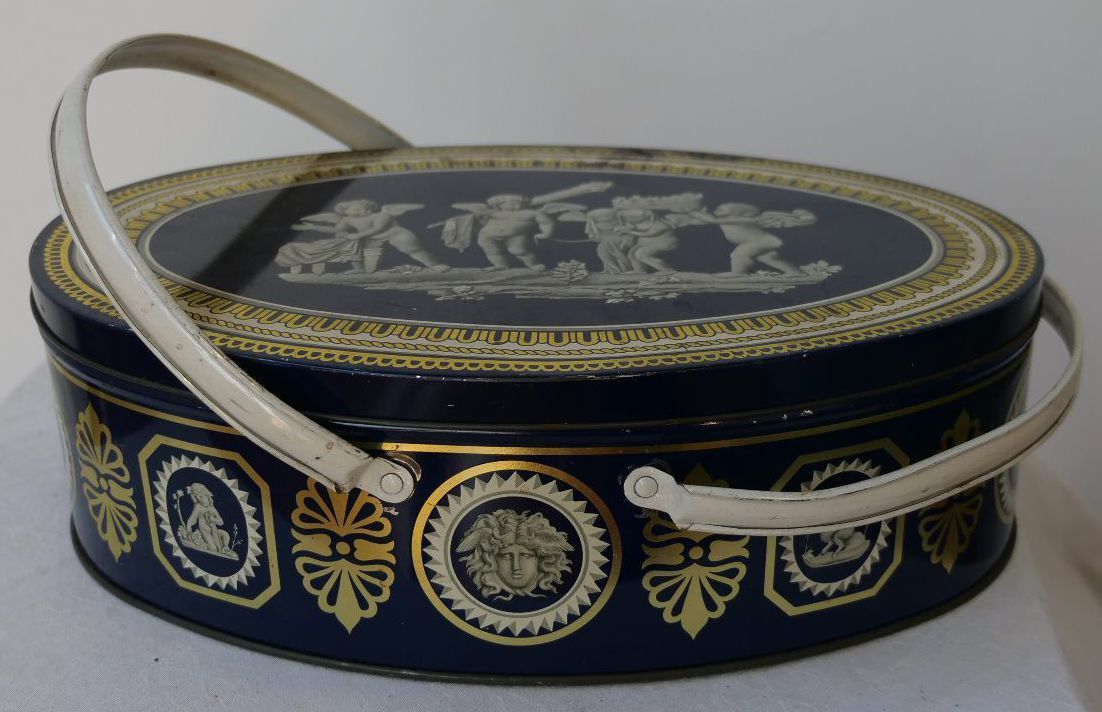 Biscuit tin with lid and handles