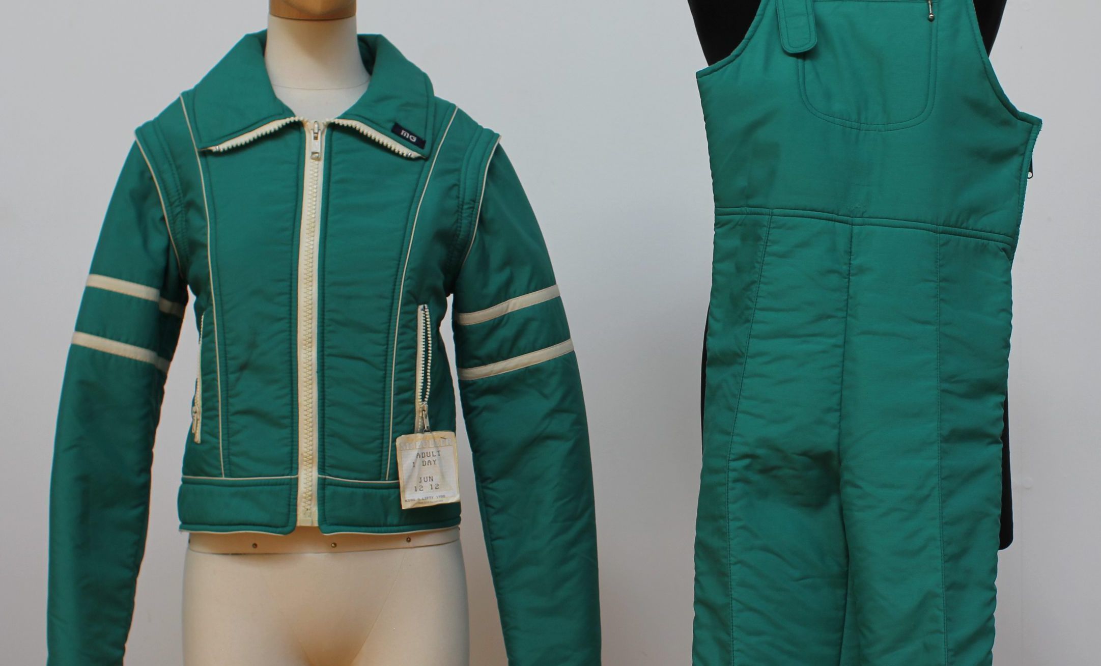 Vintage snow suit. Overalls and jacket with foldaway hood and removable sleeves