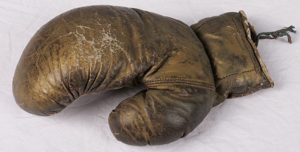 Single leather boxing glove, painted gold