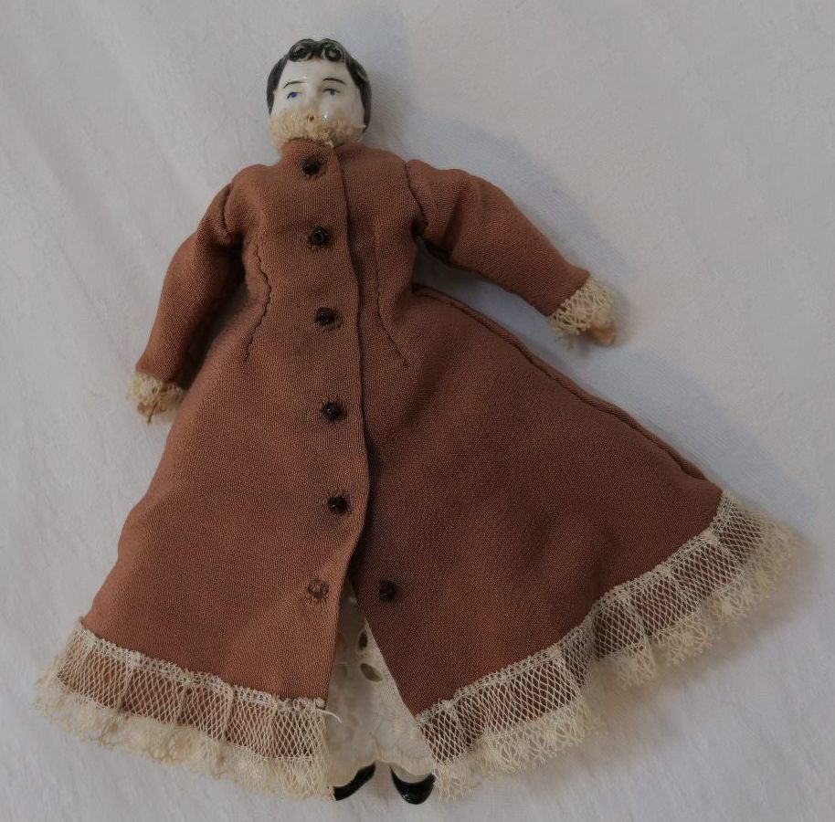 Tiny vintage doll with ceramic head, hands and feet