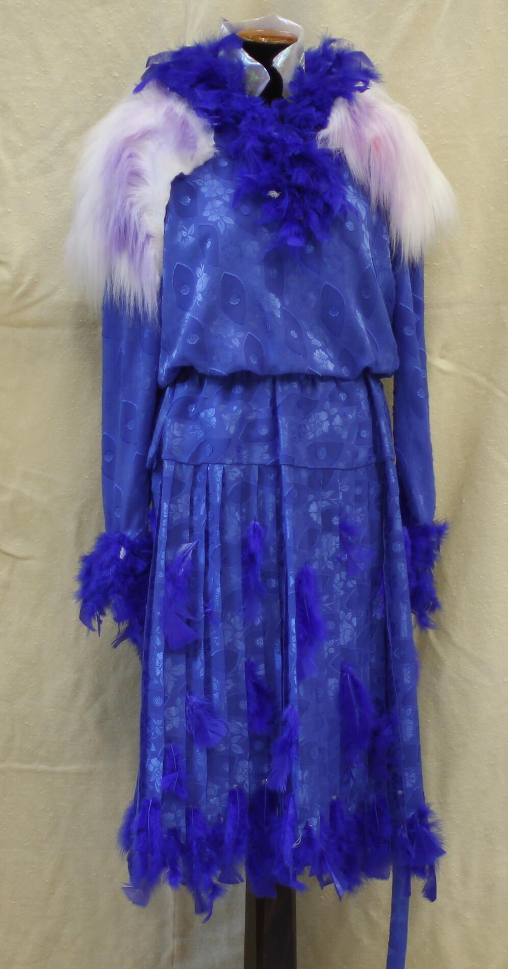 Feathers and fur evening dress