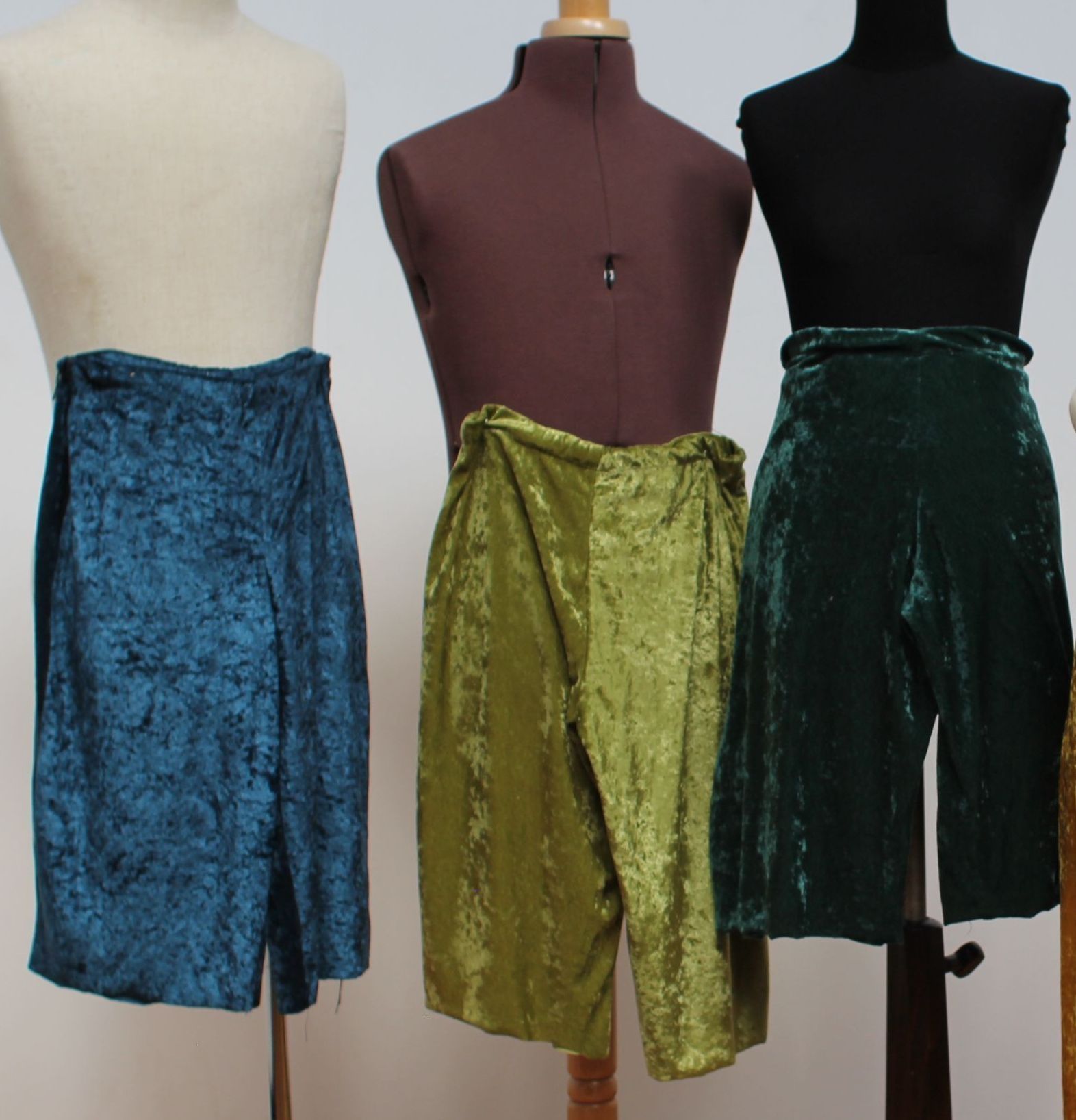 Simple elastic crushed velvet shorts/pants 1x light green, 2x dark green, 5x turquoise