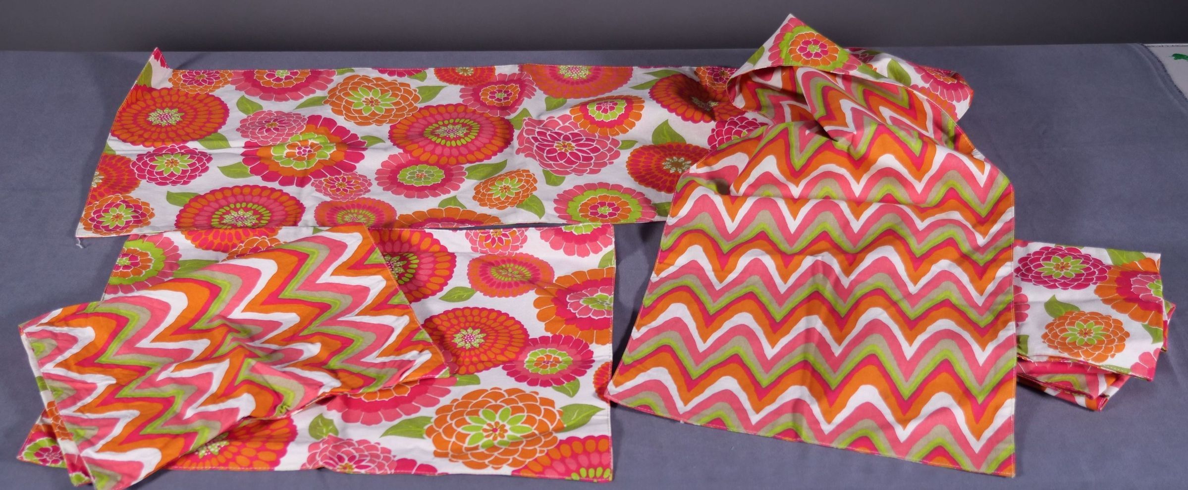 Reversible table runner and 6 table placemats