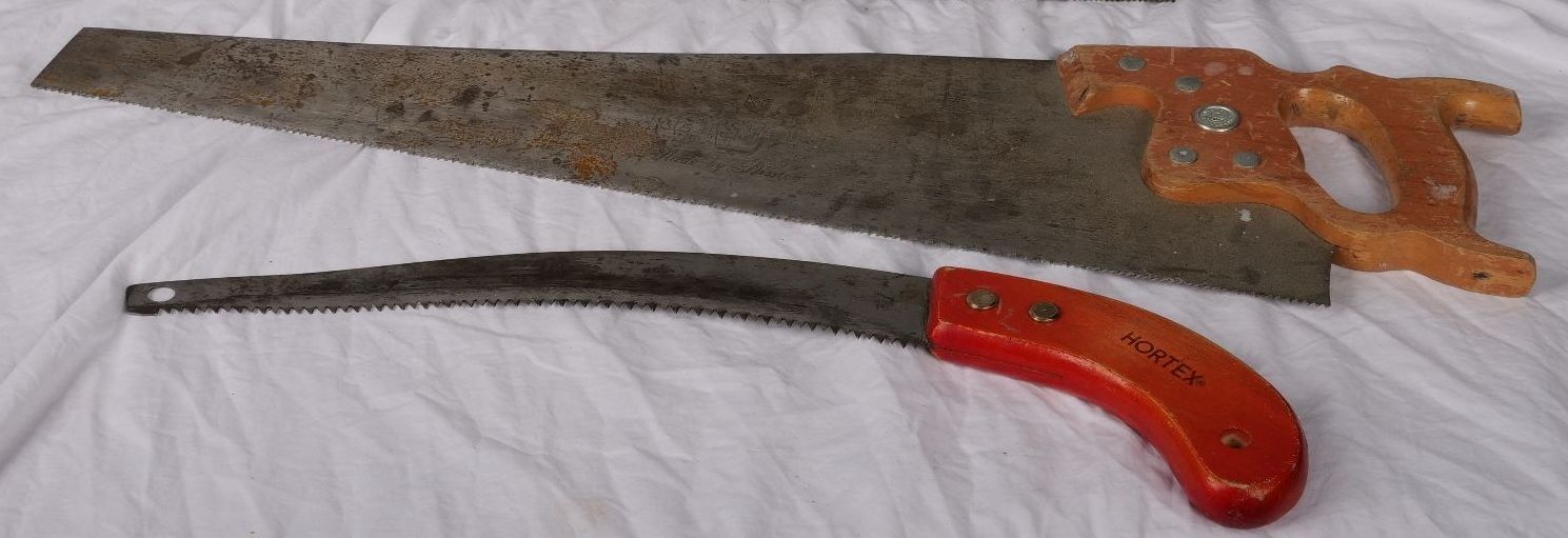 Large hand saw and a curved garden saw