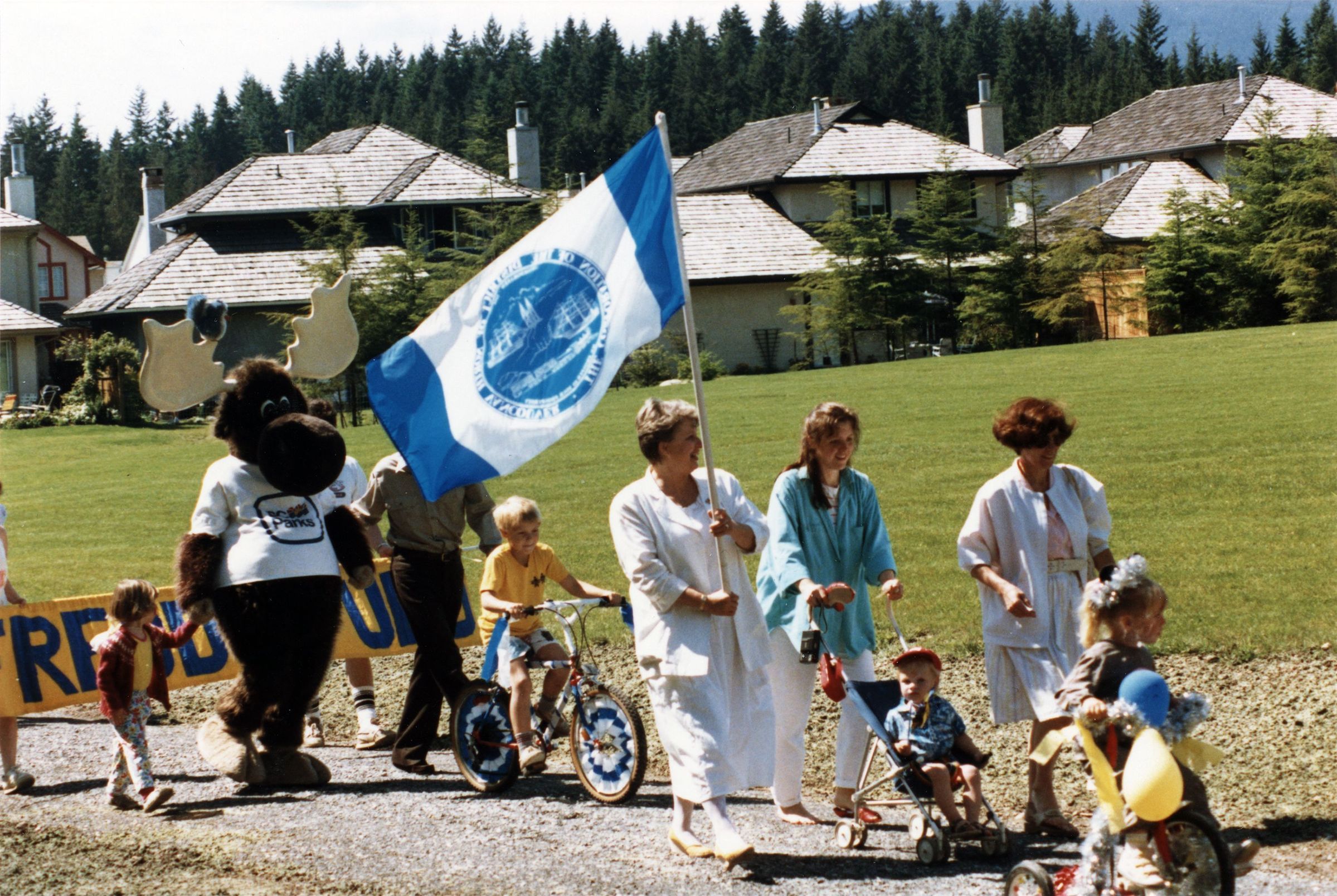 3111 - 03 - Marilyn Baker with flag, BC Parks Moose