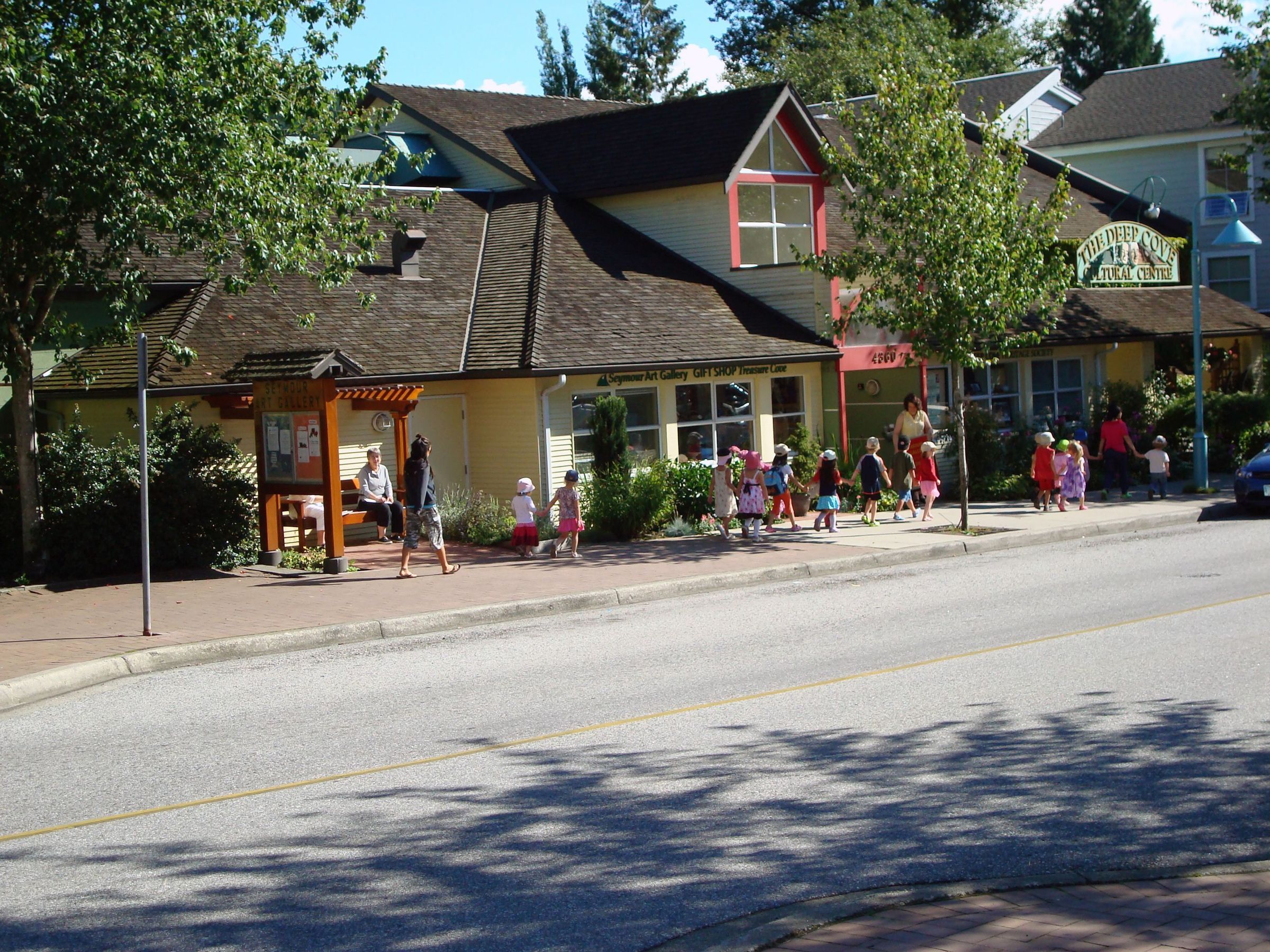 02 - Mamalina's Montessori Preschool children passing by Deep Cove Community Centre