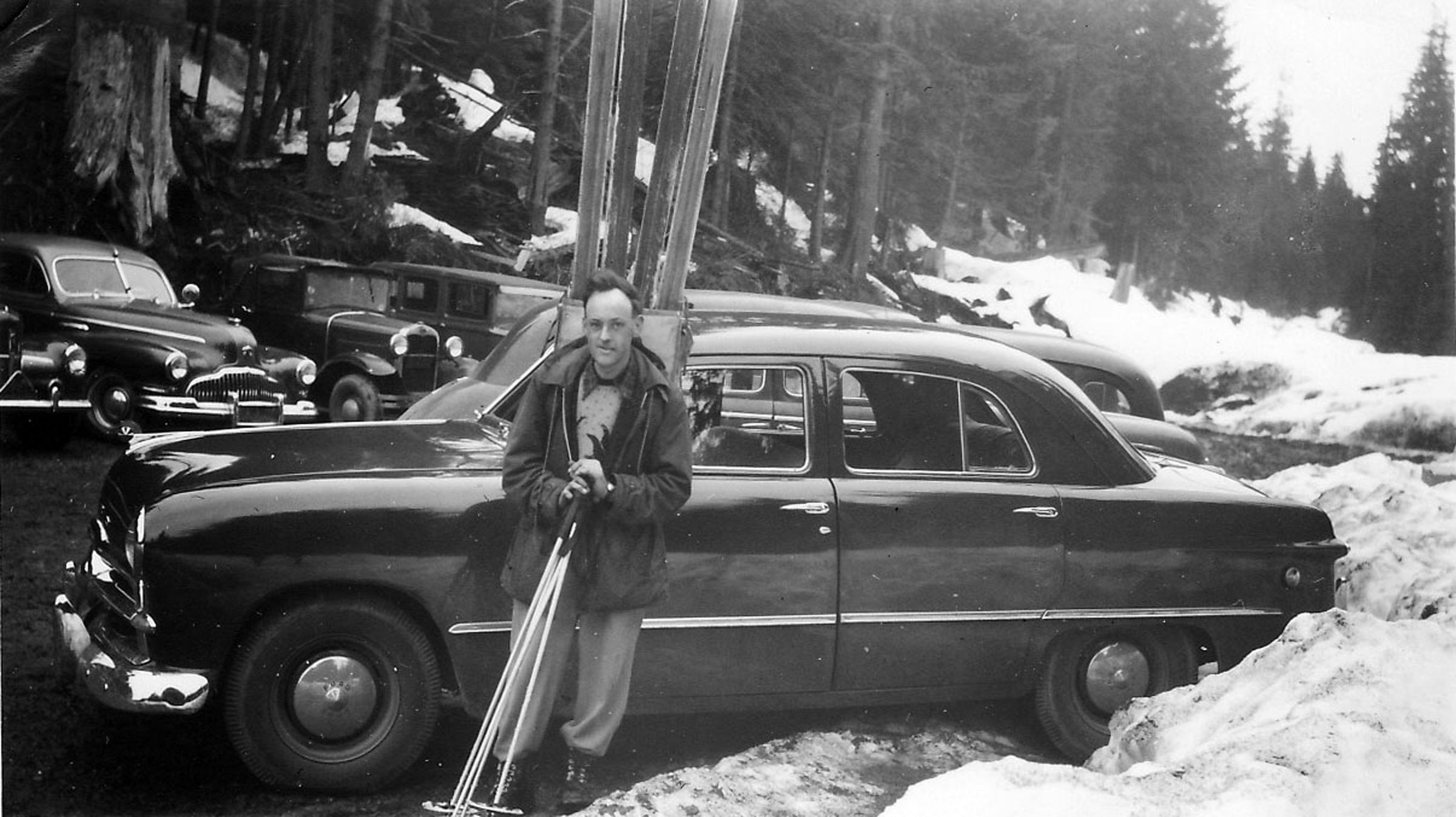 Gwynn Jenkins' Ford, skiing c1950s.tif