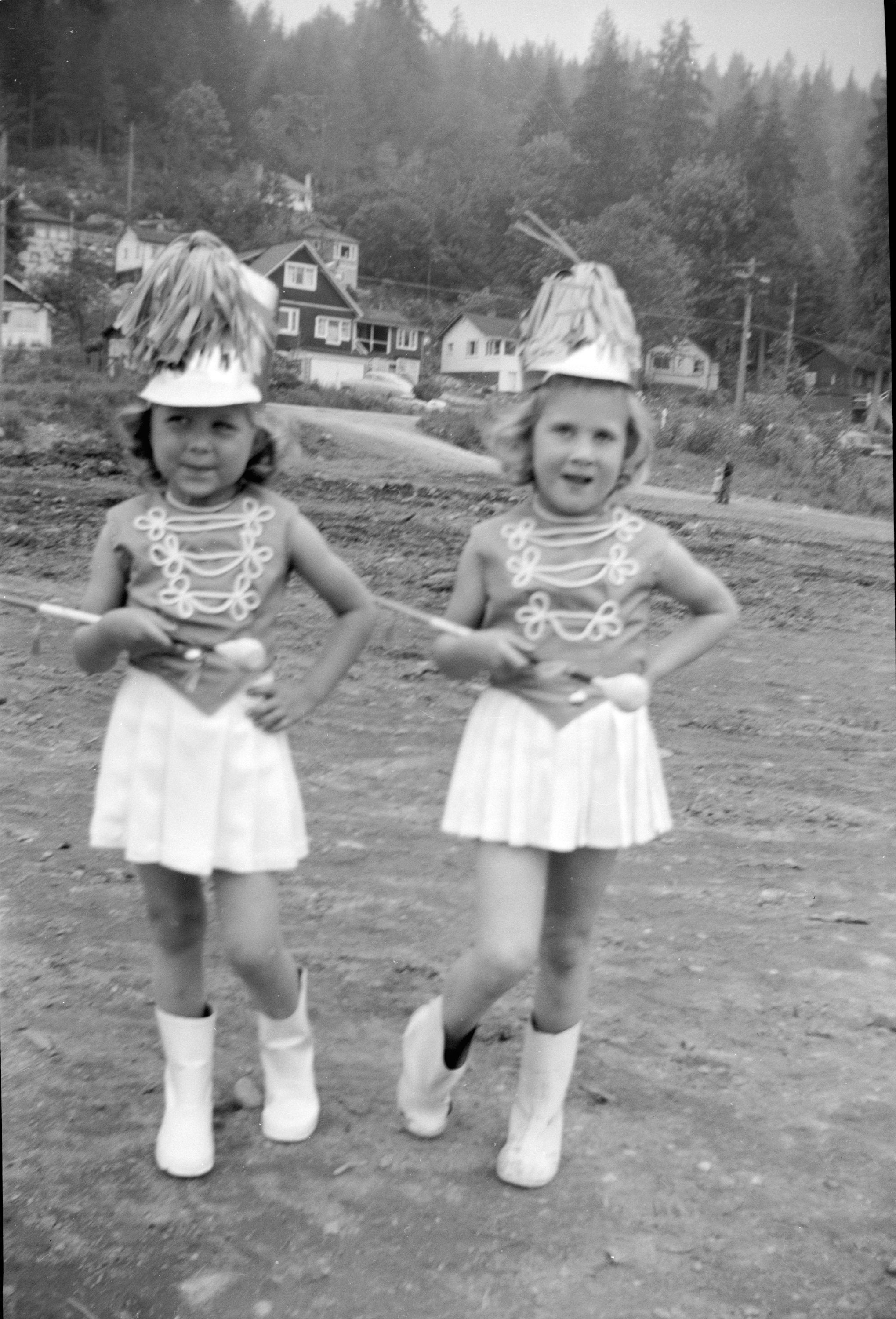 May Day Parade majorettes, Anne Wells, Eileen Alway, Burns Ave c1953.tif