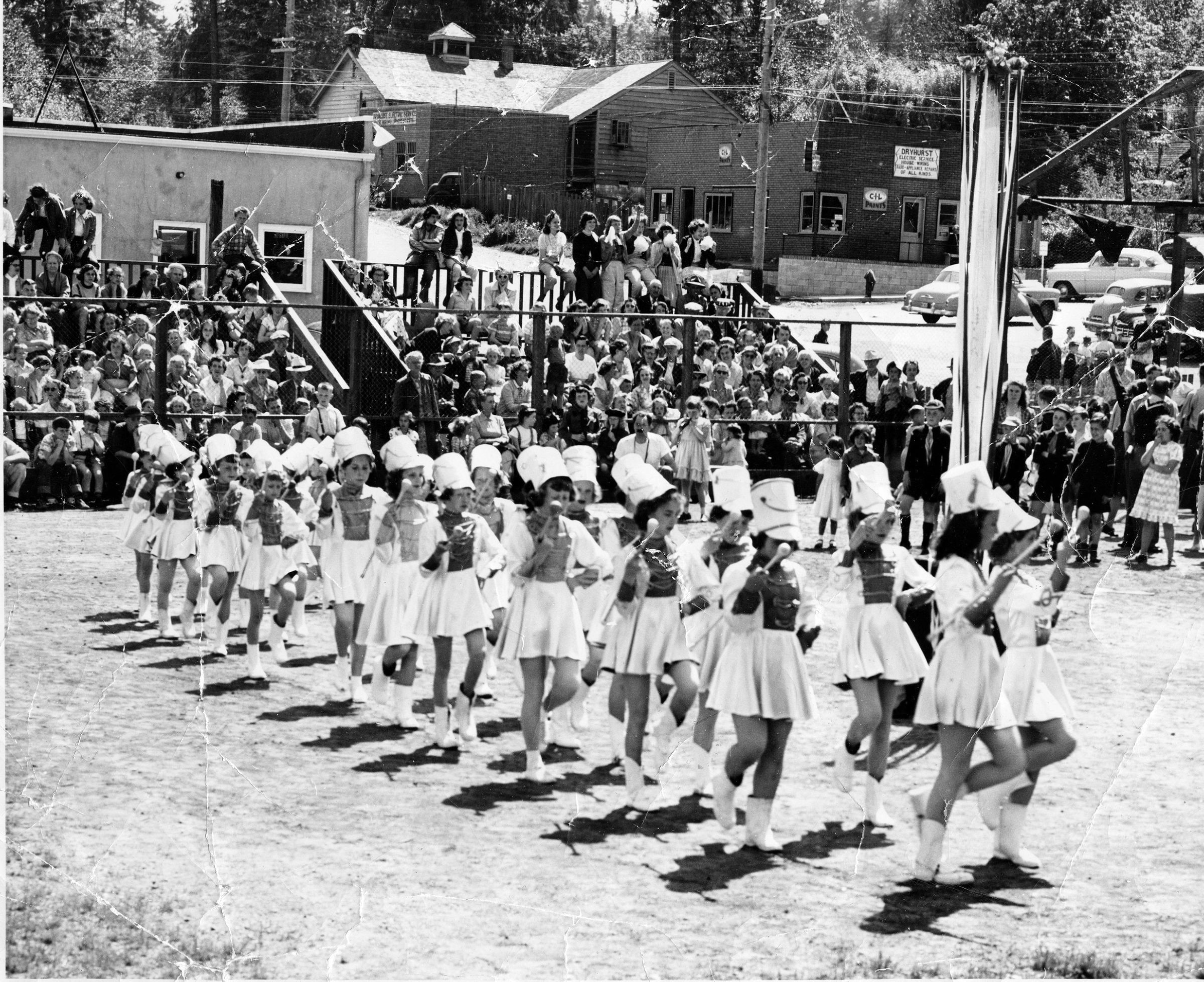 3687 - May Day Parade, Majorettes, Maypole, stores.tif