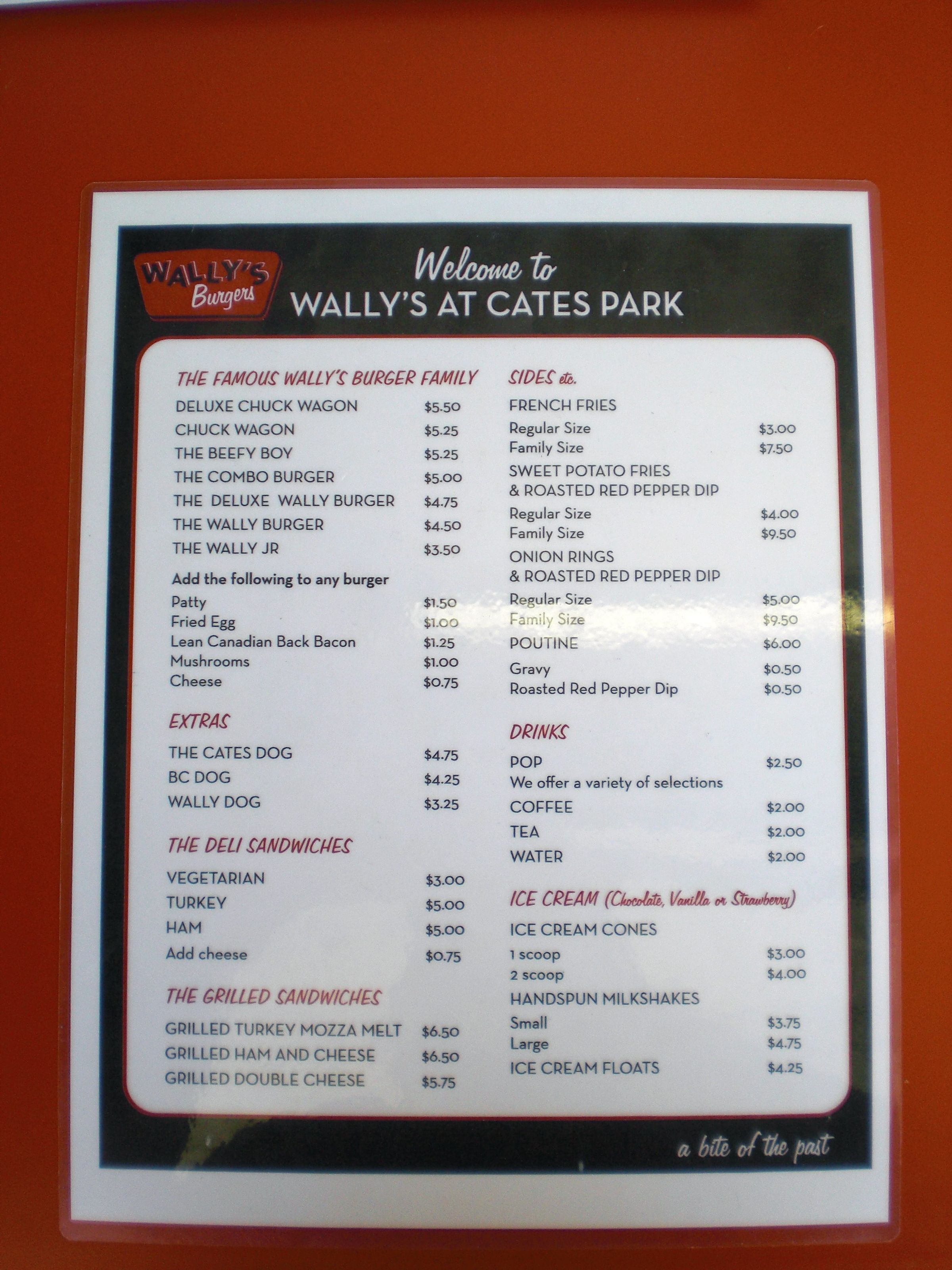 Cates Park/Whey-ah-Wichen (West); Wally's Burger Menu from concession stand