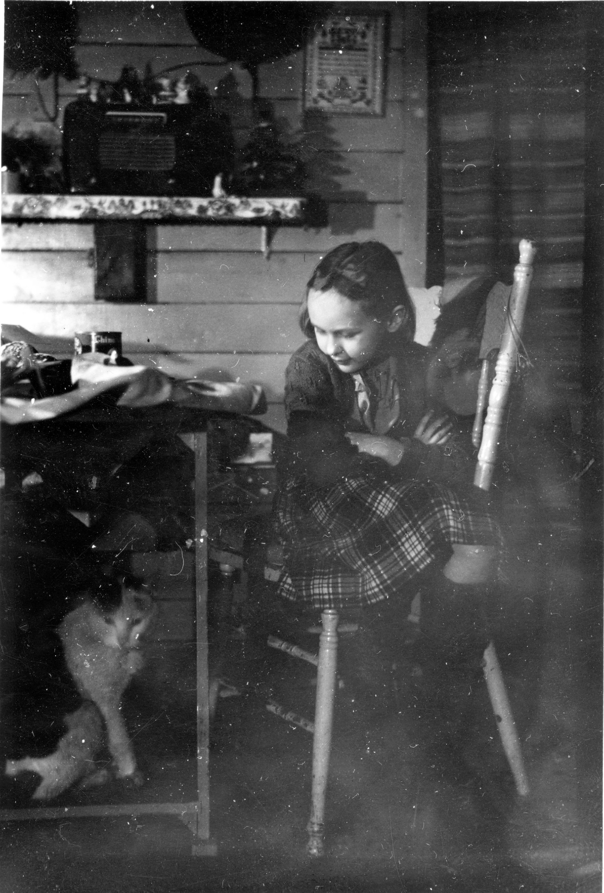3705 - Girl in kitchen, cat, radio 1947-52.tif