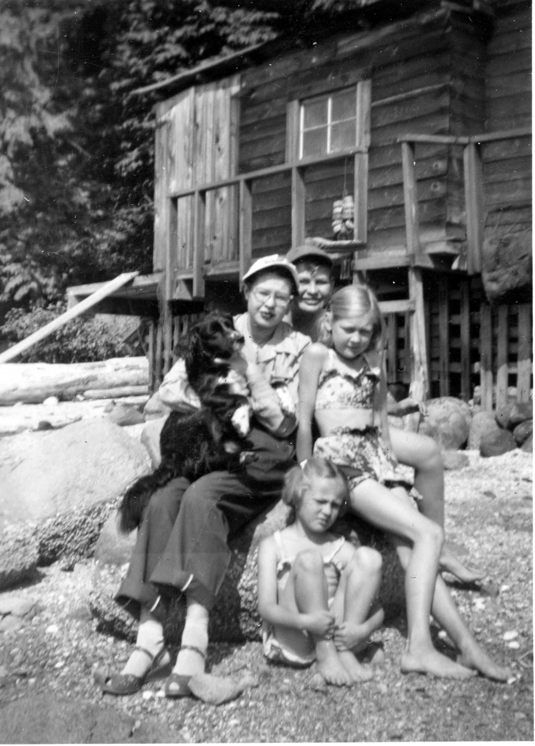 3707 - Jose, Peter, Janet, Hince & dog Steve, 1951.tif