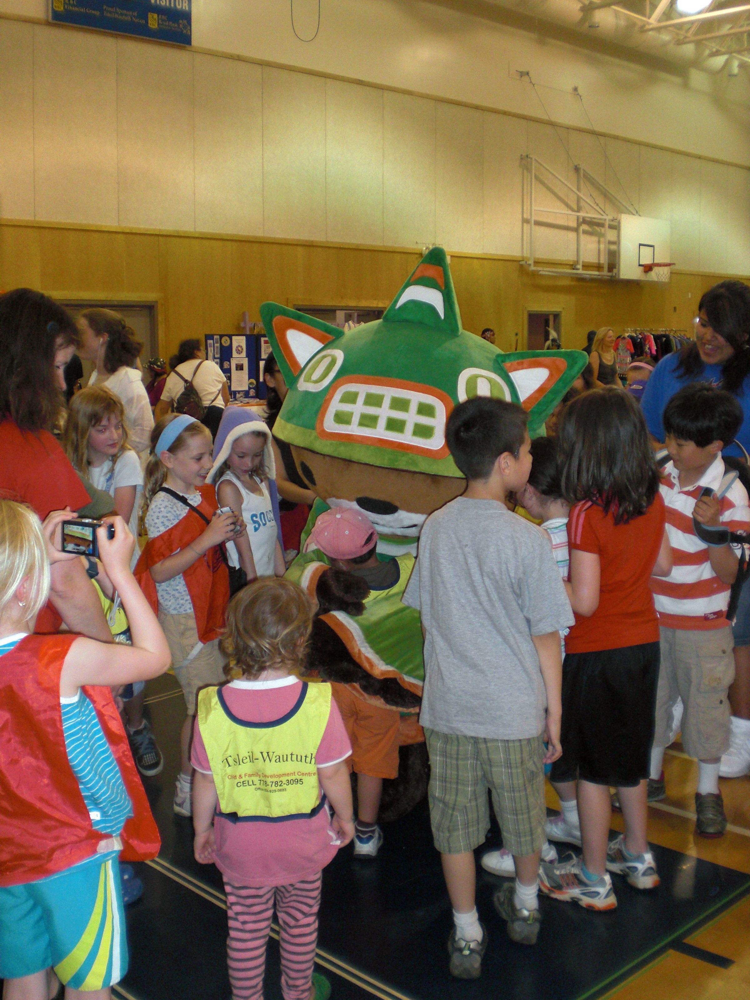 3384 - Olympic mascot in gymnasium, with children CIMG0115.JPG