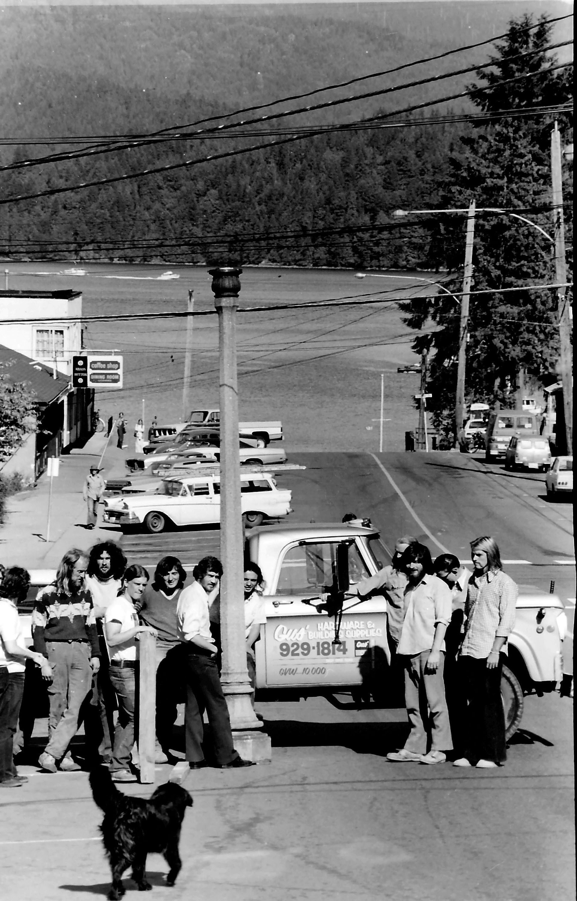 Guys with lampost, dog, on Gallant c1970s.jpg