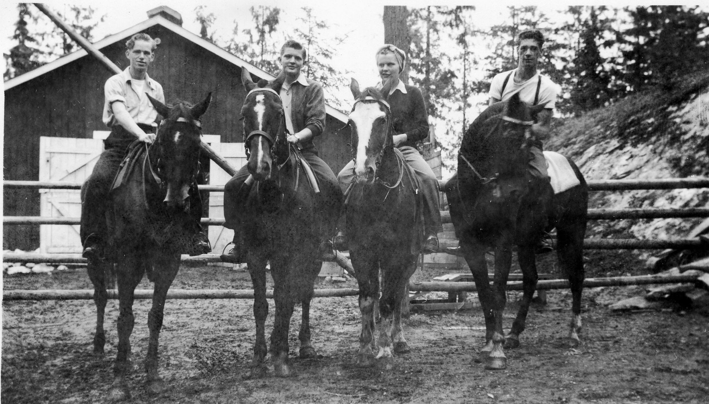 Dick- Doug L- Bea- Wally on horses 1946.tif