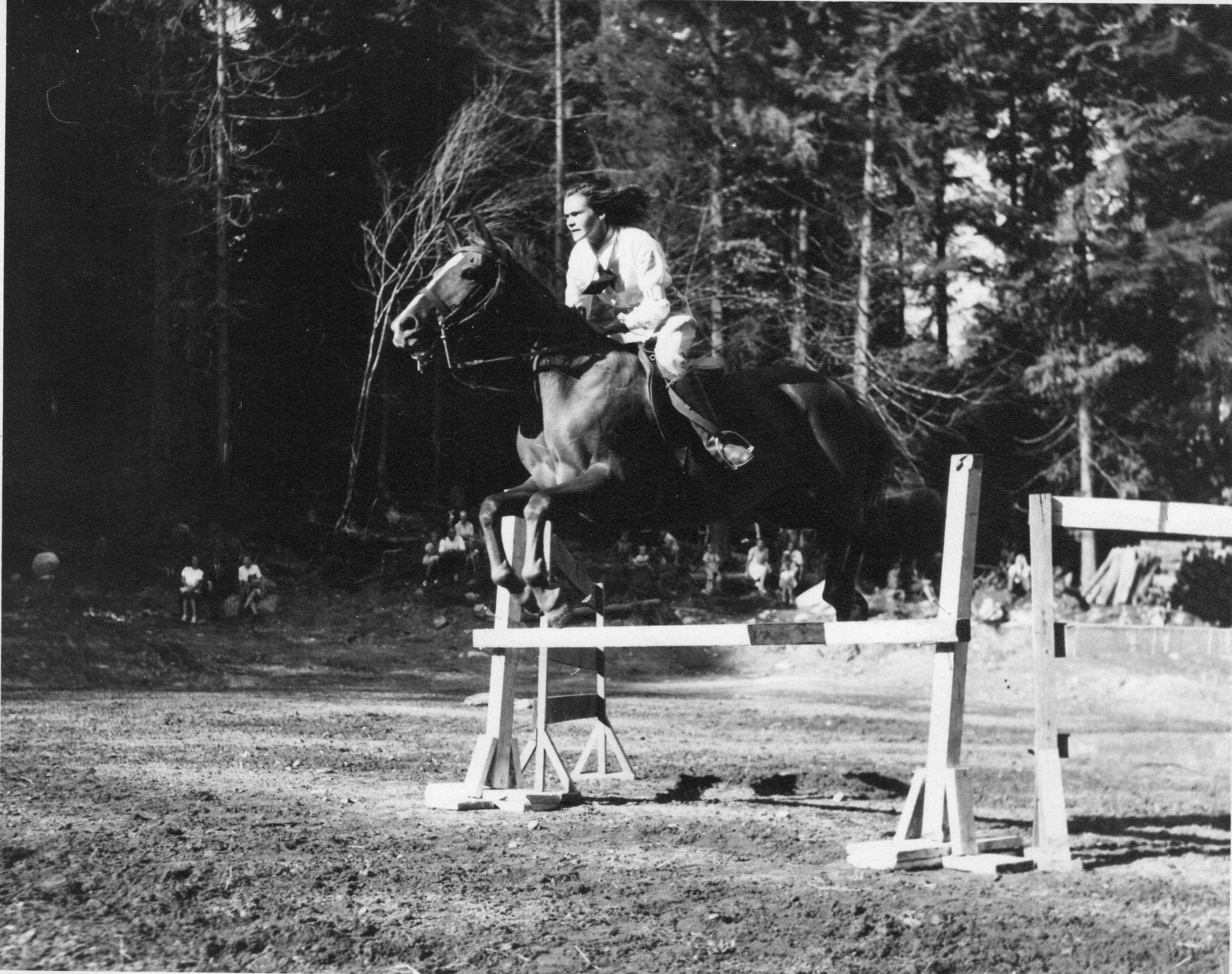 Woman on jumping horse onlookers.tif