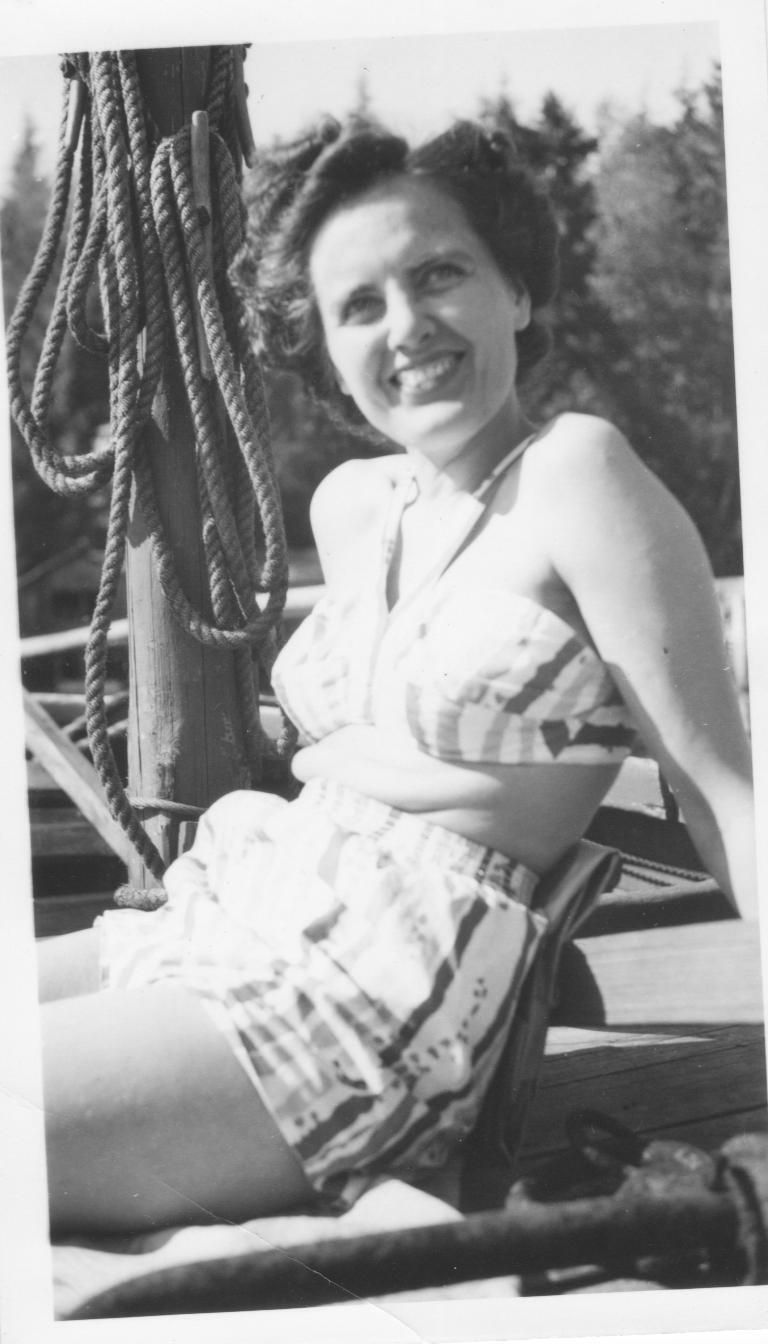 Jean Craig bathing suit photo sitting on boat at Roche PtDescription