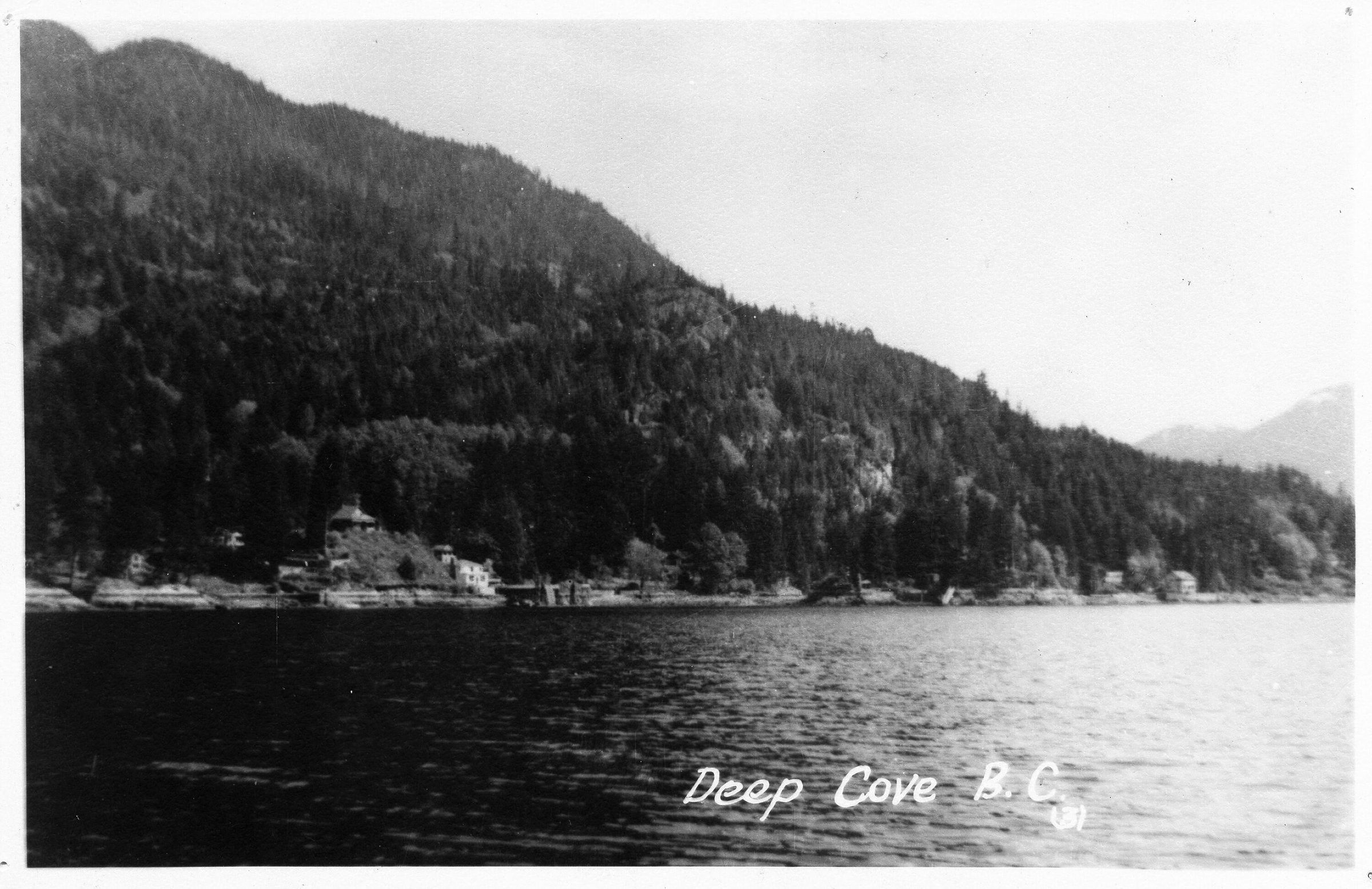 Black and White photo with white print on bottom right "Deep Cove, BC"