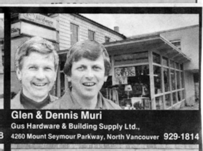 Glen & Dennis Muri, Gus Hrdwe ad 1986-05-06 NS News.tif