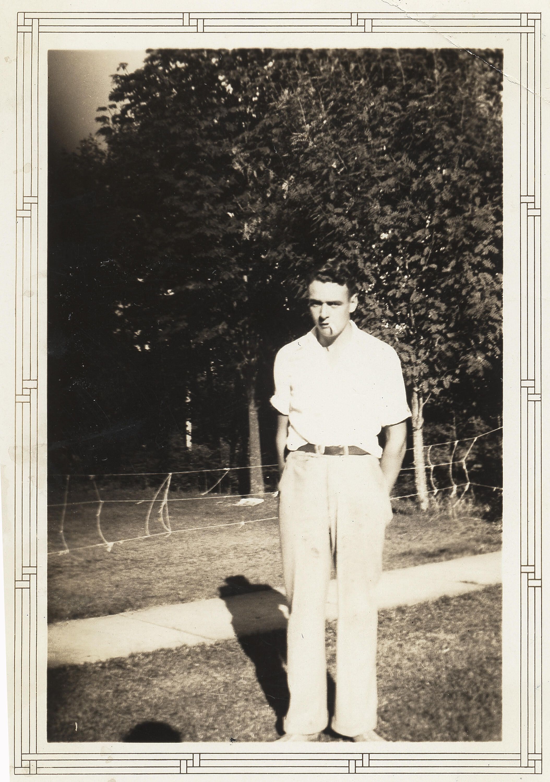 Framed Sempia image of young man staring at camera. Hands in pocket, and has cigar in mouth, staring into camera.Collection