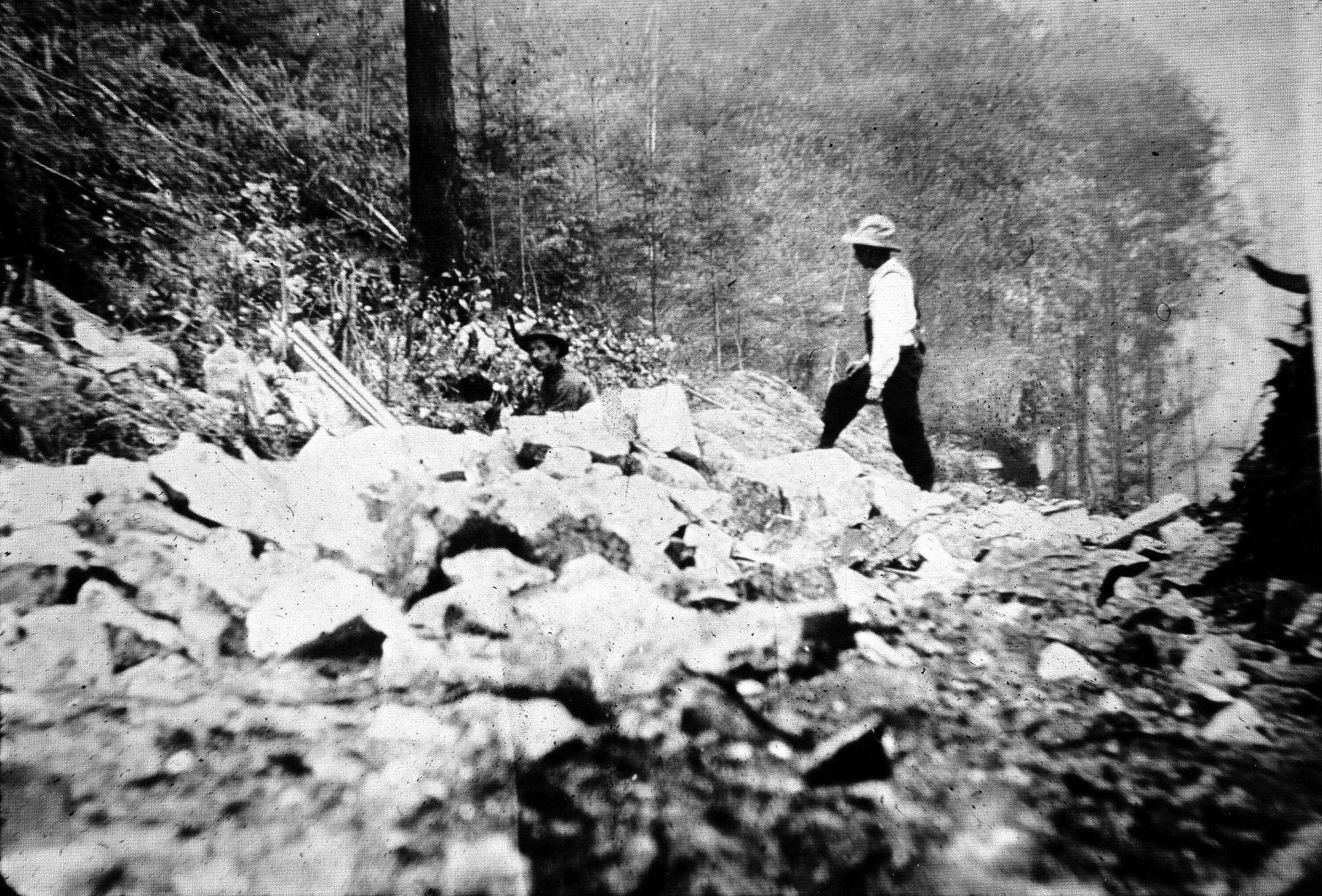 0187 - Building road to Woodlands, c1910 Men working in clearing rocks for road.
