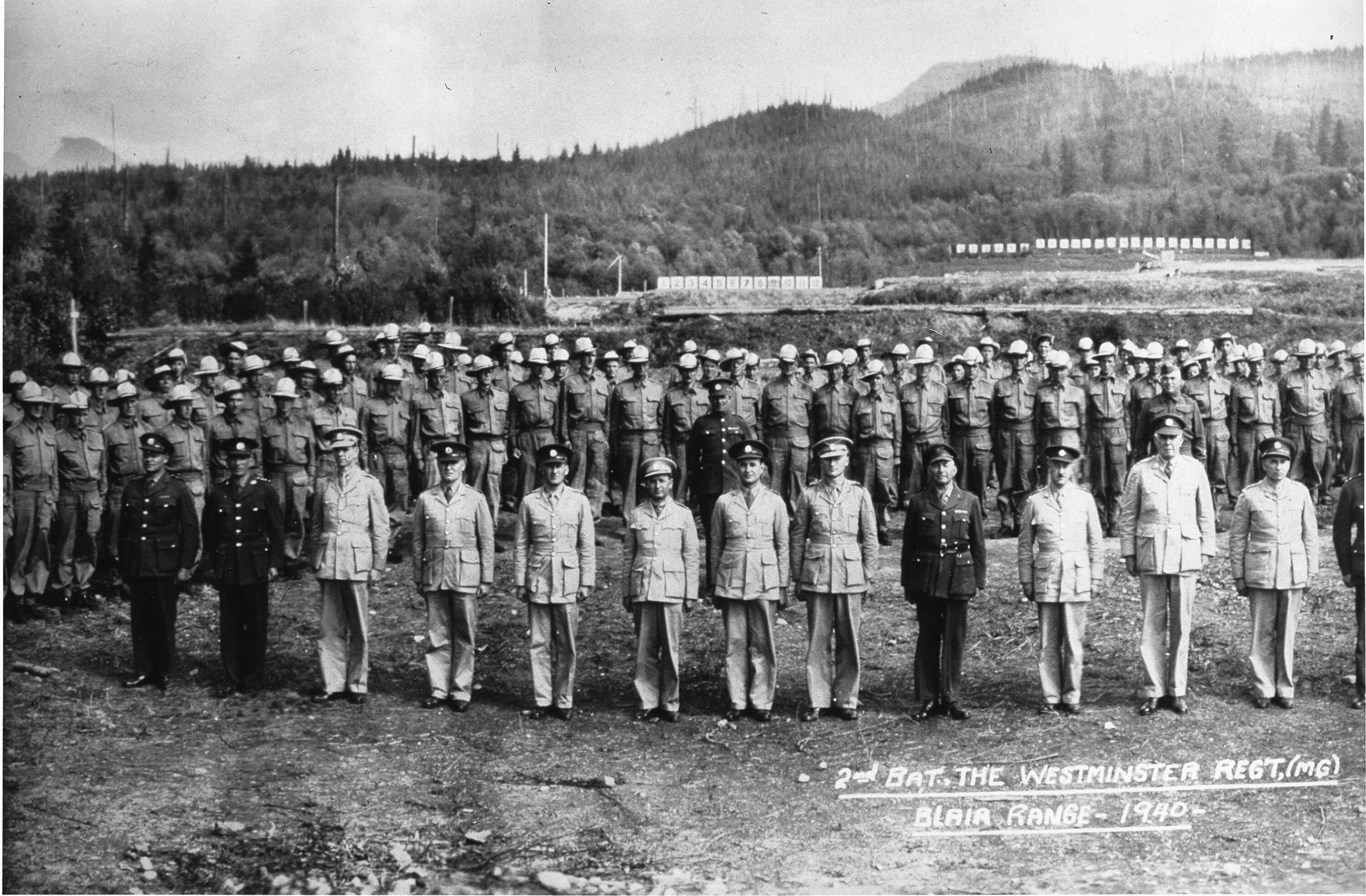 Black and white photo of men standing in line/ form, presenting themselves to camea.