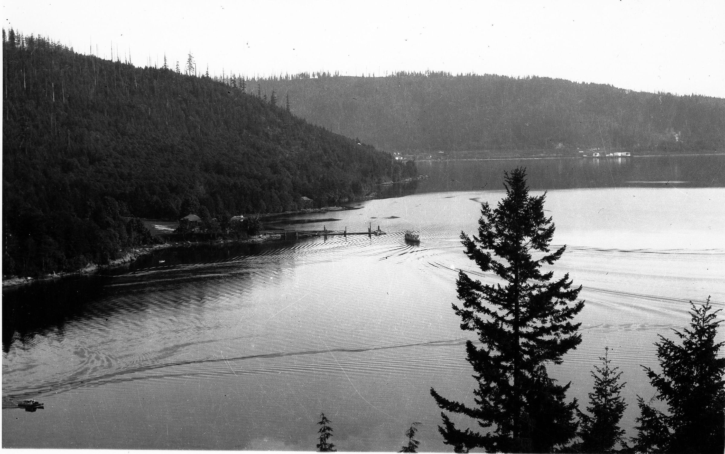 Trees in foreground. South end /Point of Deep Cove/ Cove cliff seen to Perspective left.Collection