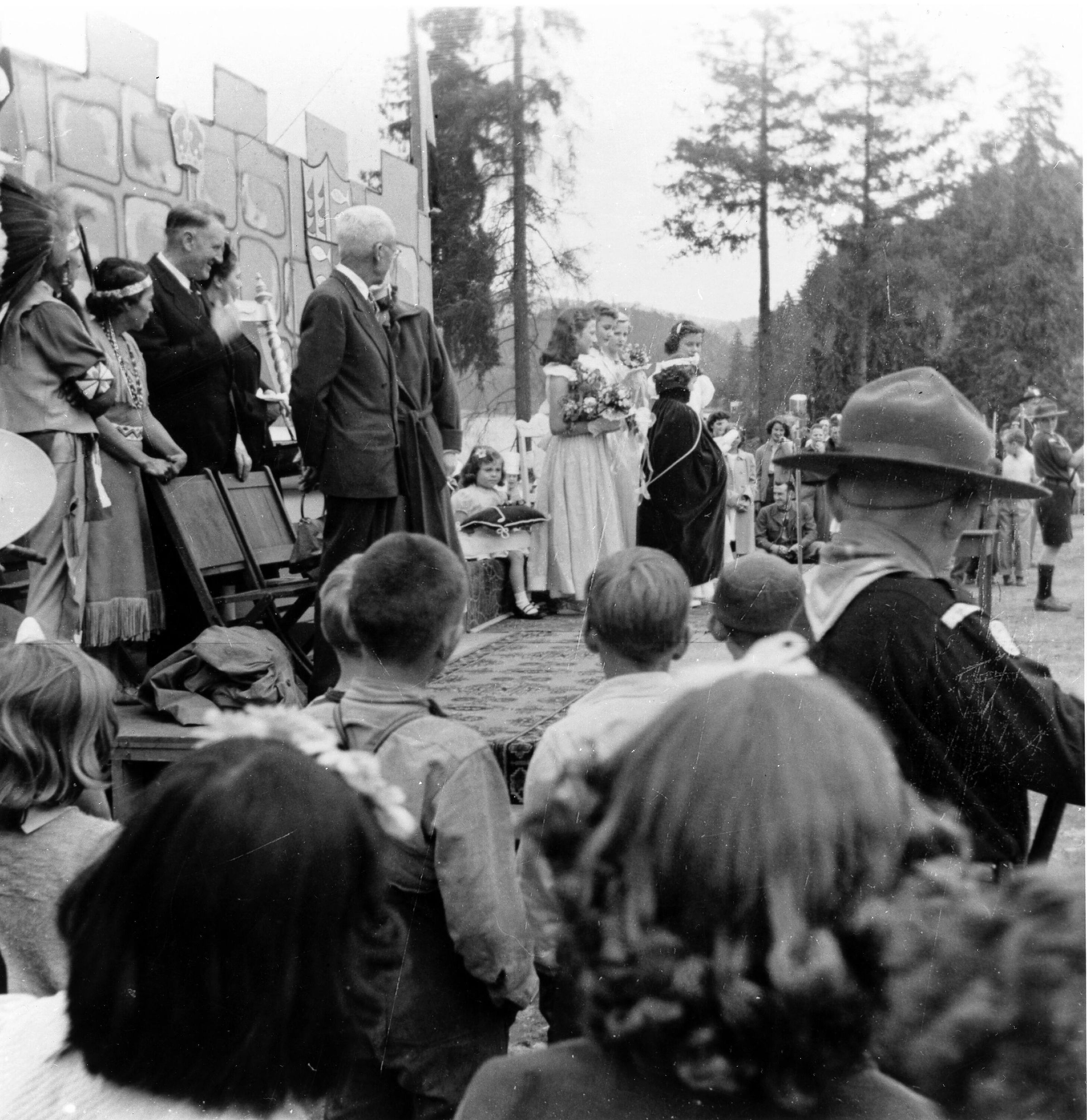0353 - May Queen and Officials on Stage B&W image taken from right side of stage.