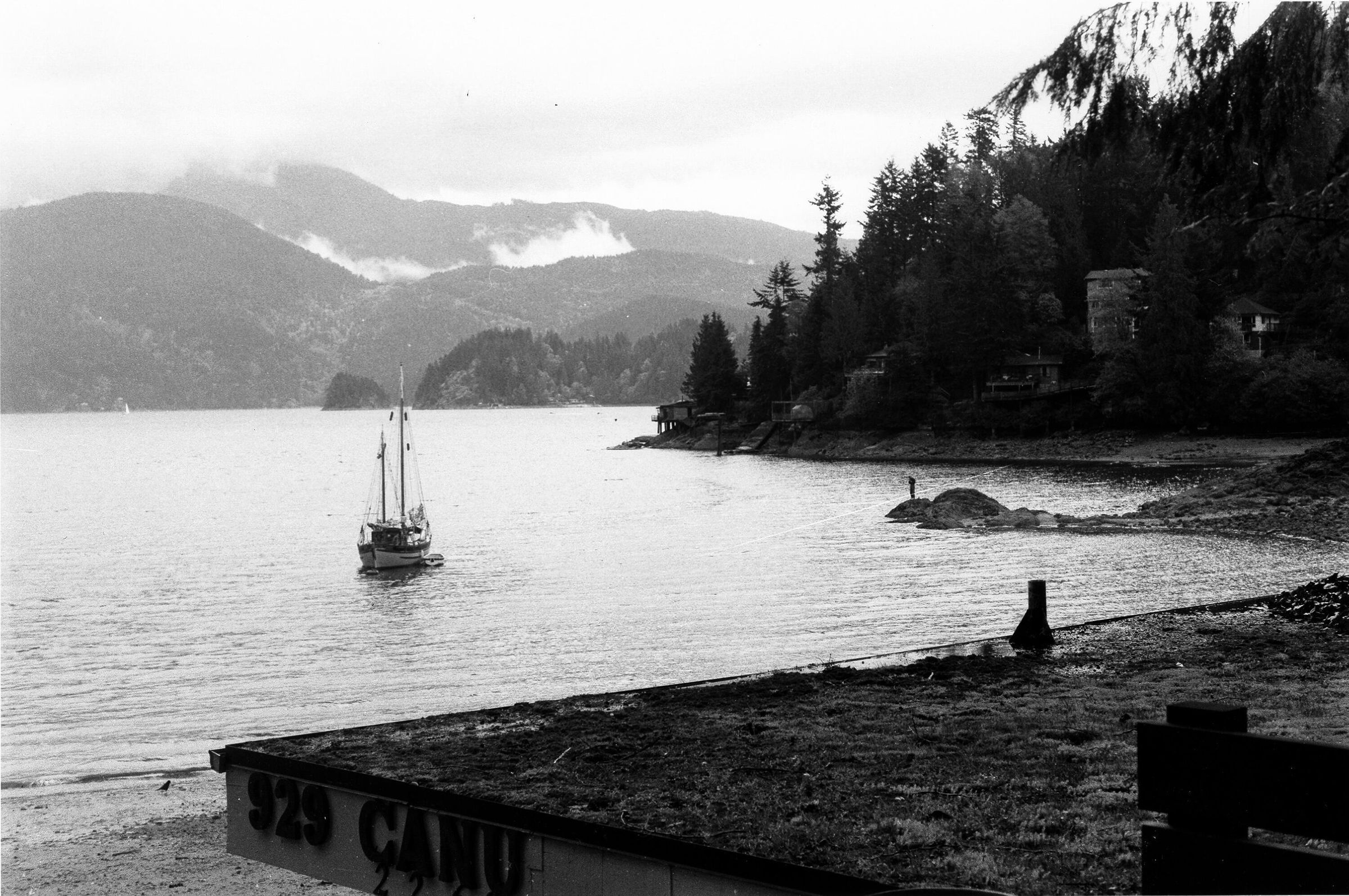 Canoe Rental roof with view of Deep Cove and boat