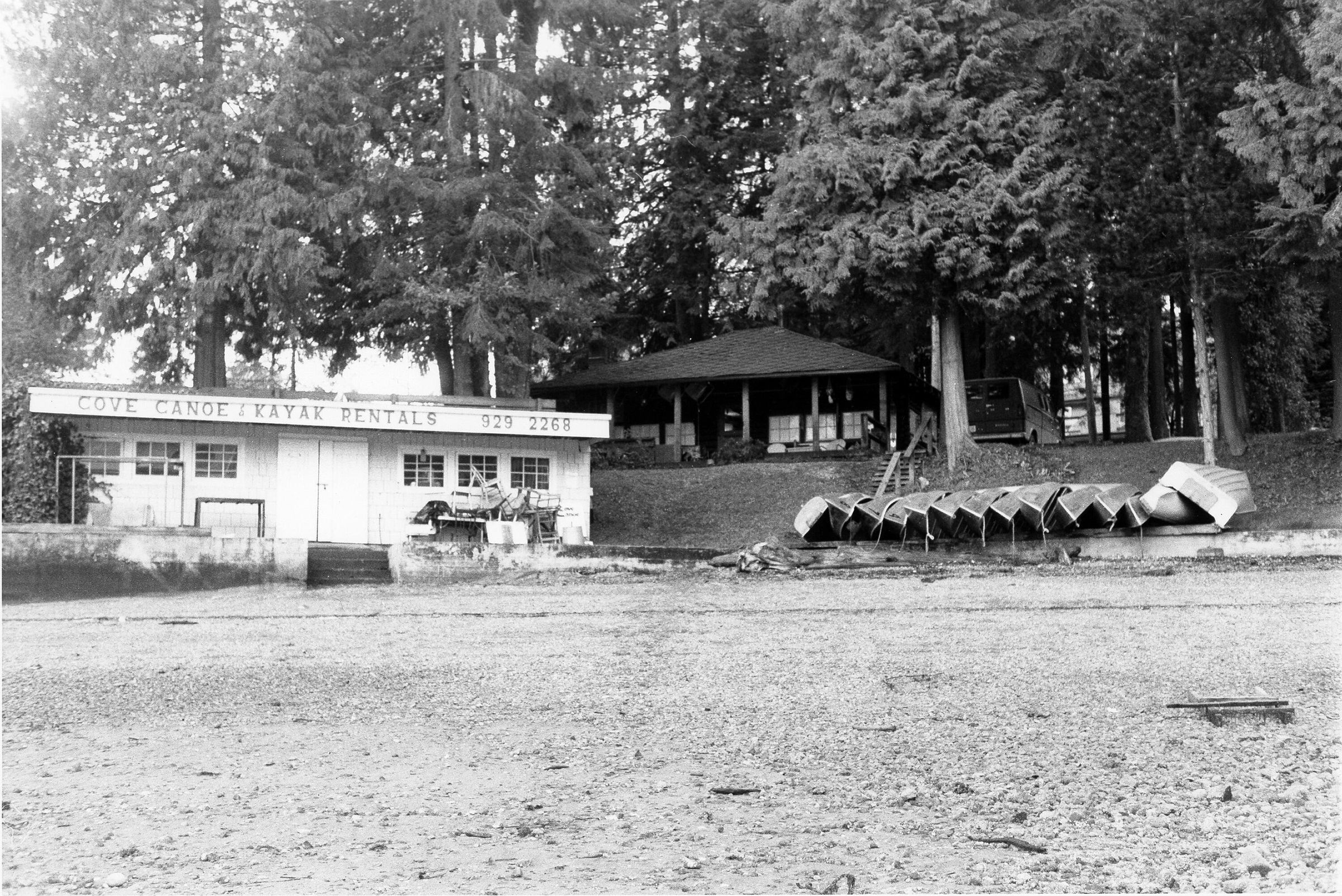 0477 - Canoe and Kayak Rentals Building with log cabin in background, before demolitionCollection