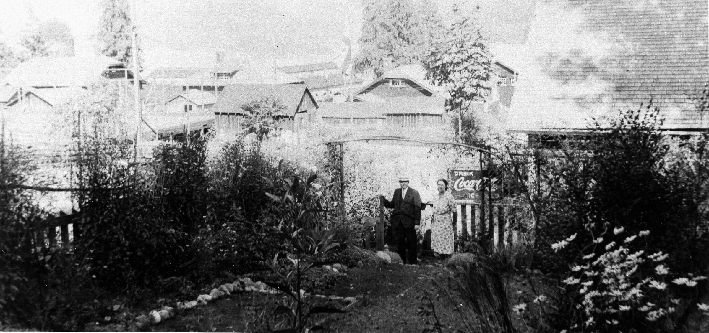 0563 - Dollar Mill from store garden, Reta and friend 1940