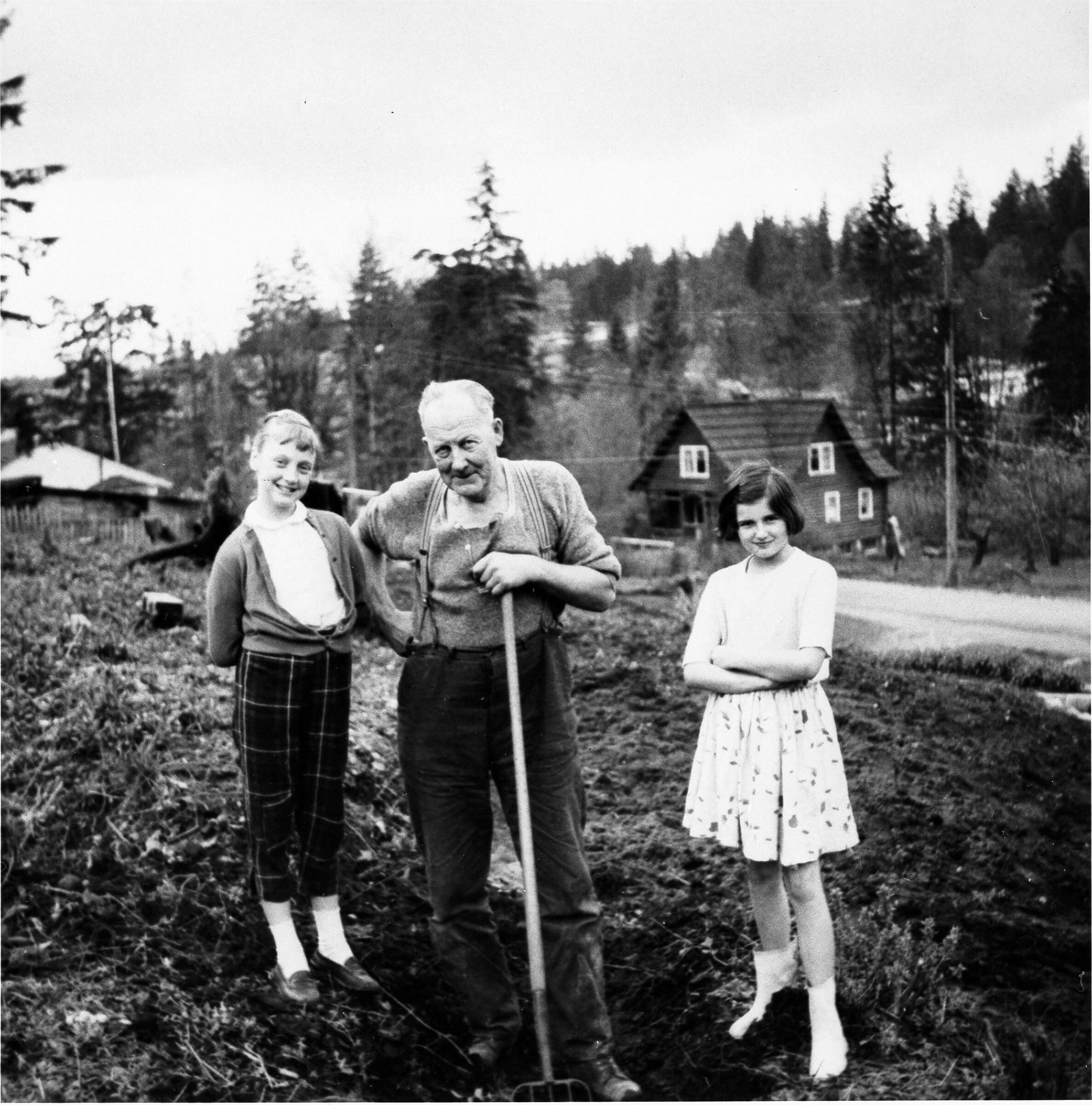 Gillis, Jack and daughters clearing land for Strathcona store