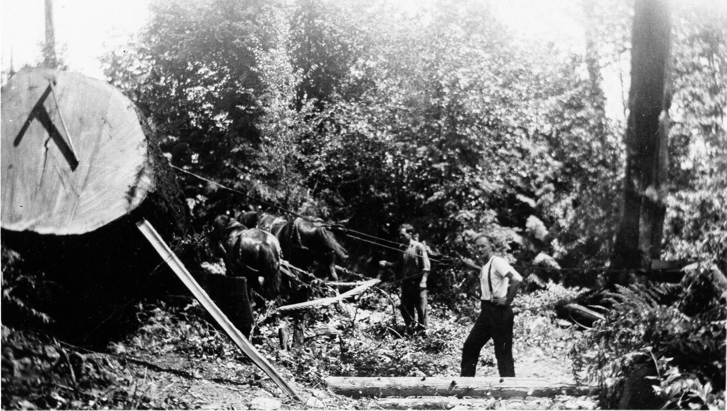 Gillis, Jack logging huge trees with horses