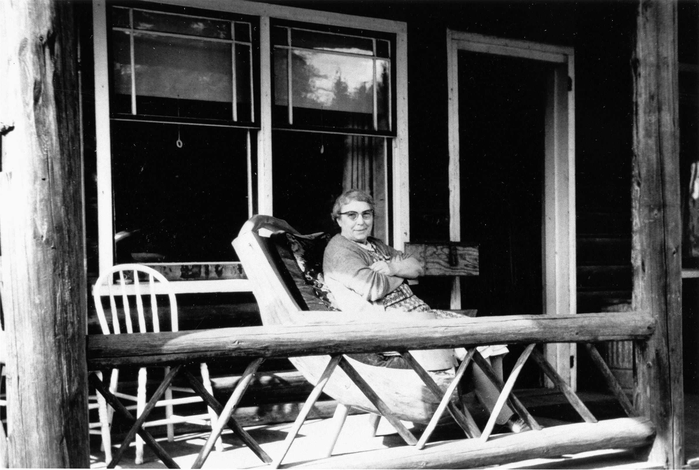 Gillis, Mrs Christena on porch of HomesteadDescription