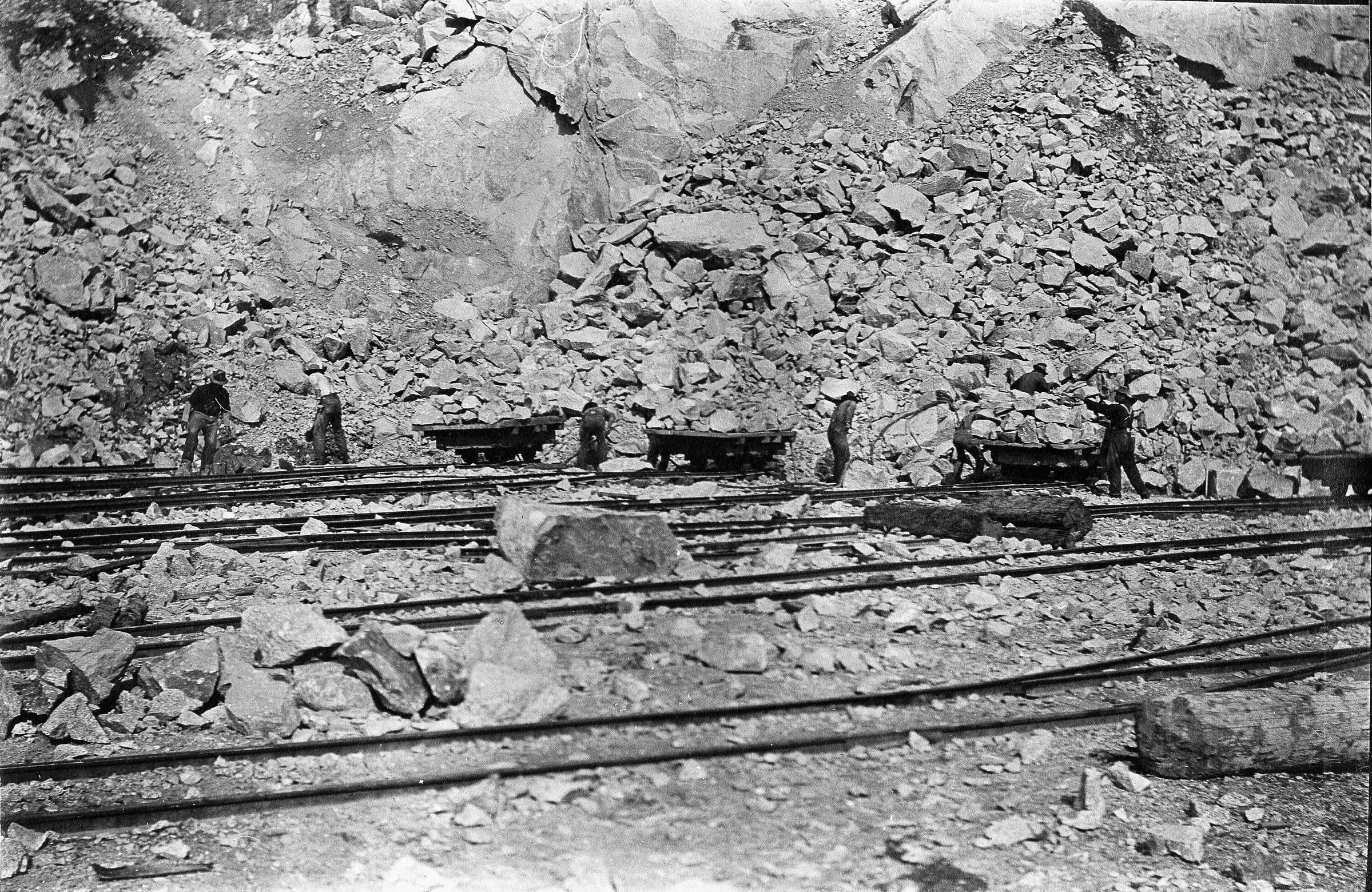 0744 - Granite Quarries men piling rocks on flatbed