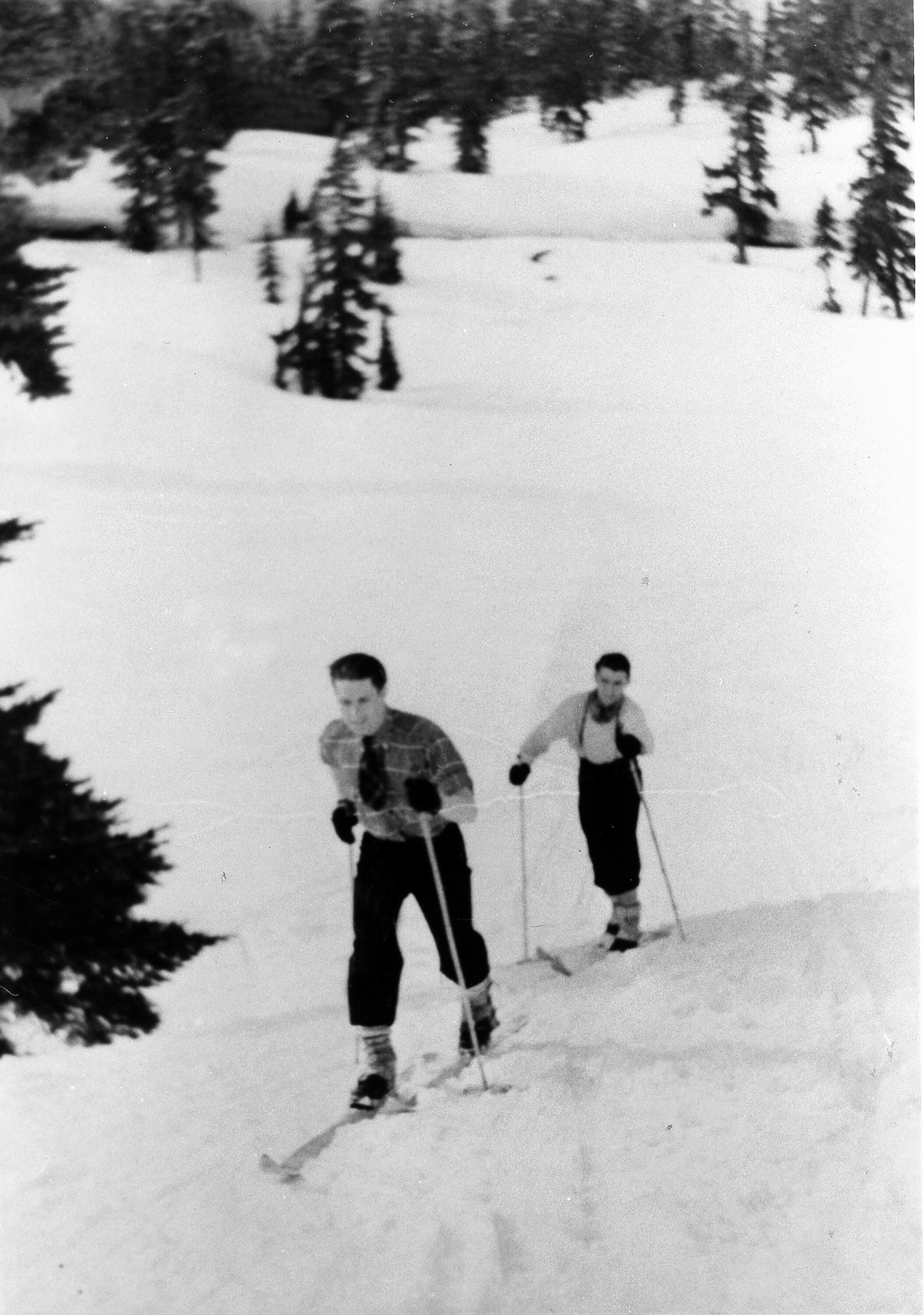 0773 - Ian Beaton skiing on Mt Seymour c1940 Skiiing with another person