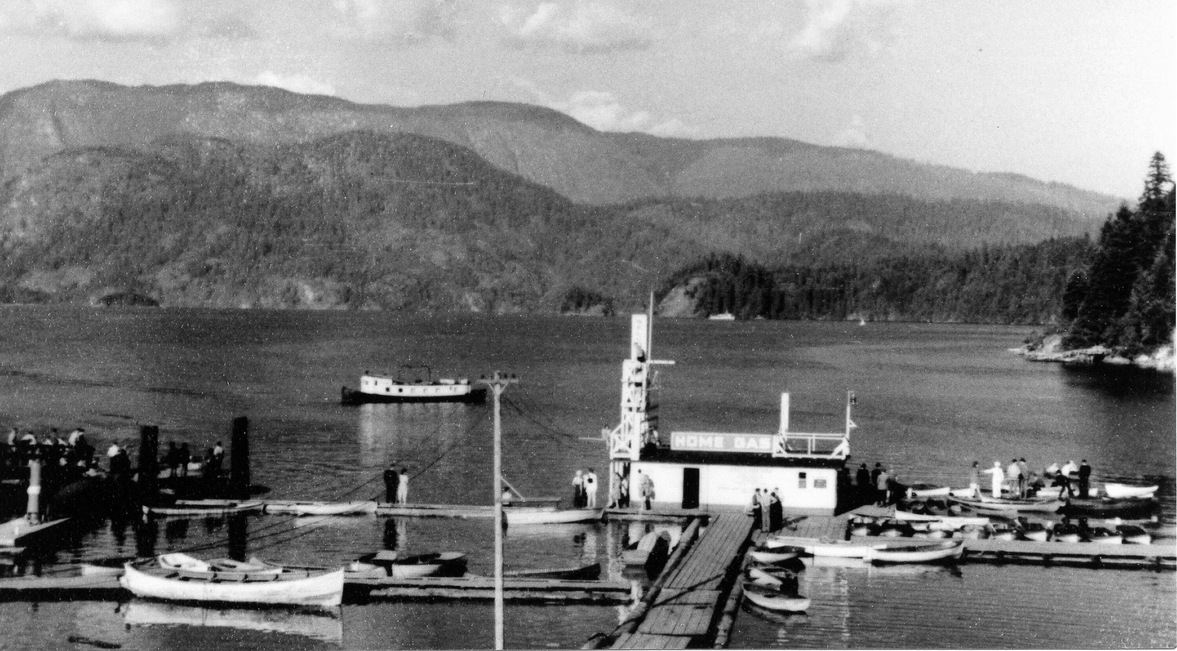 0817 - Home Gas Barge from Gov't Wharf Note diving platformon left of Home Gas