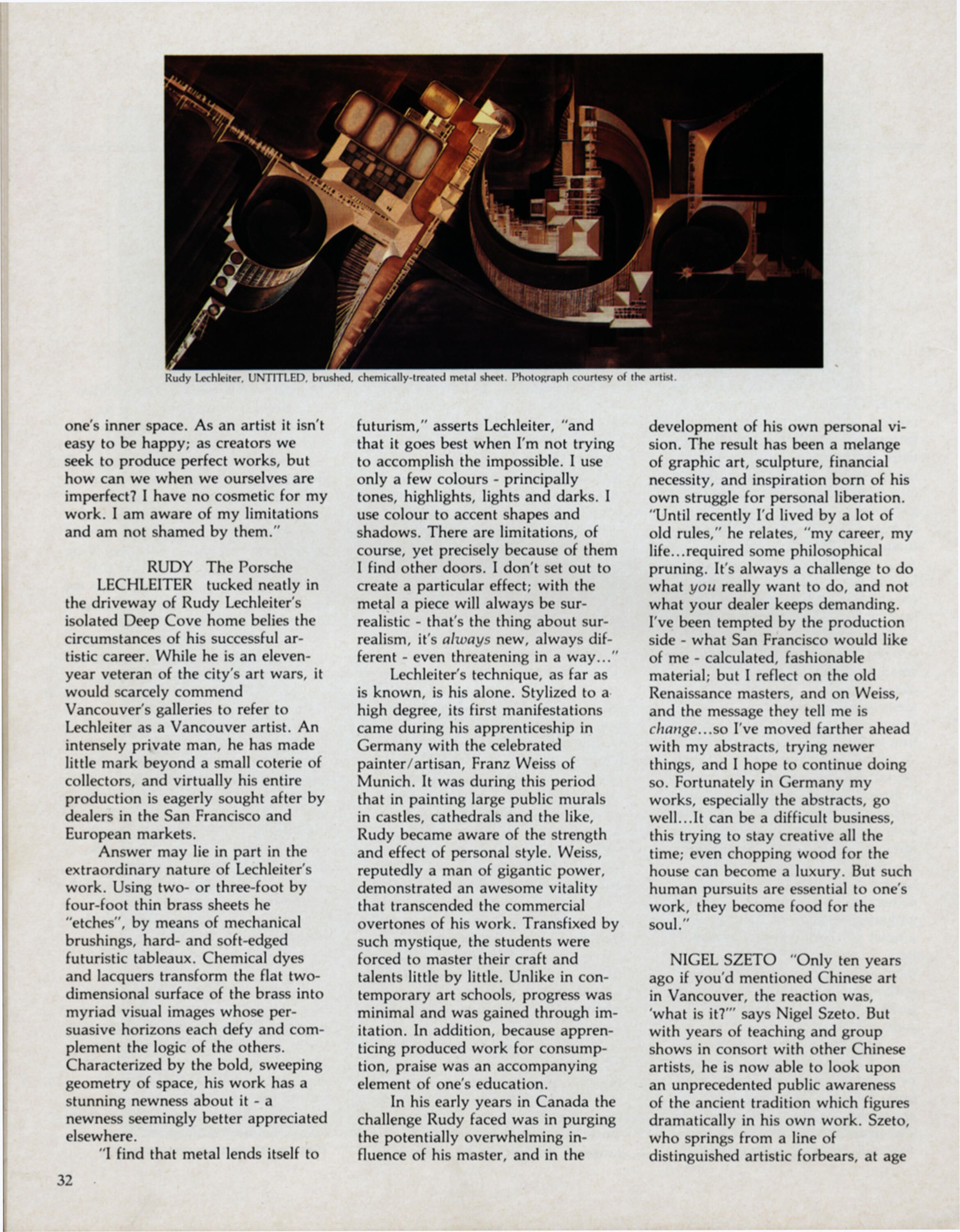 Rudy Lechleiter, Arts West mag Sept 1981