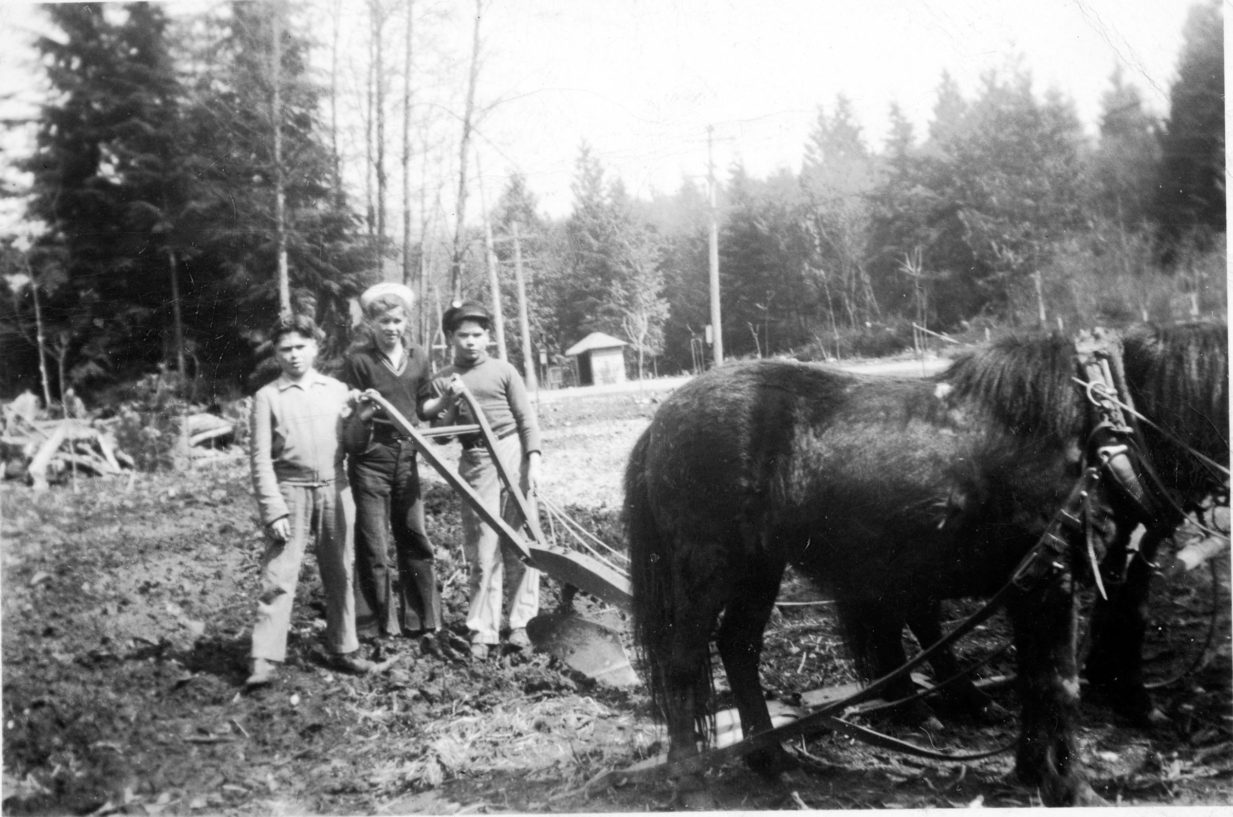 Boys with plough behind horses 1945.tif