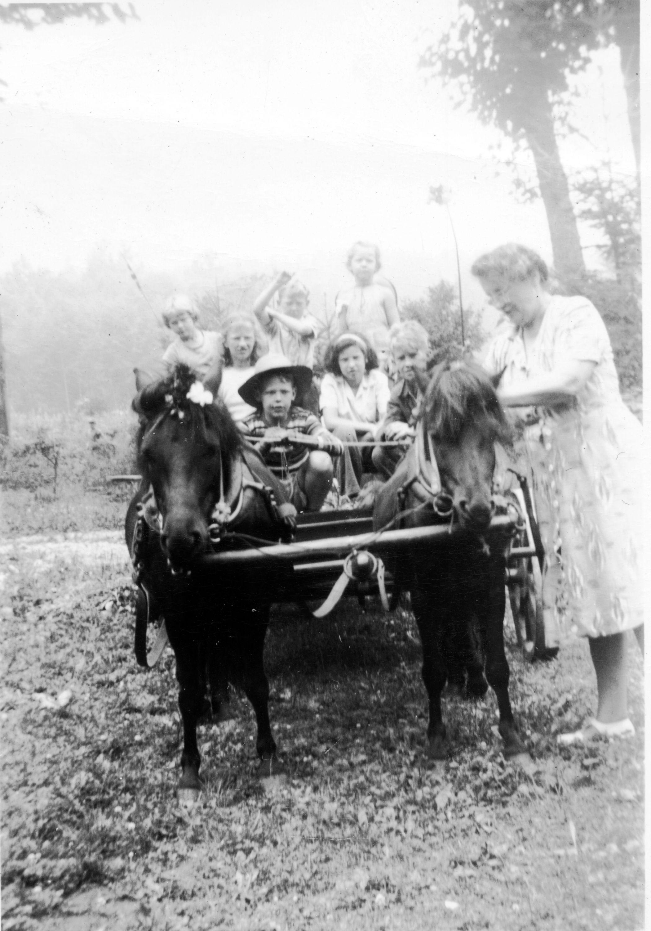 Hilda Fox with Kids on horse drawn wagon, 1948.tif