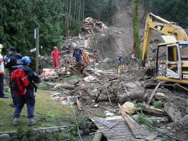 Mudslide, Riverside, rescue workers view debris - 2005 Berkley-Riverside Dr.tif
