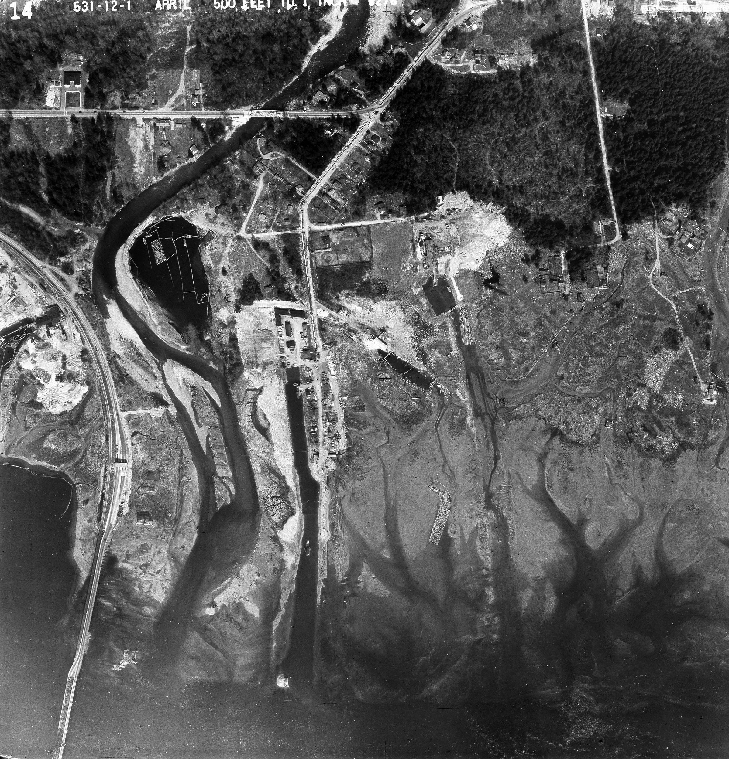 14 - Maplewood Industrial, Seymour River with train bridge, 1953